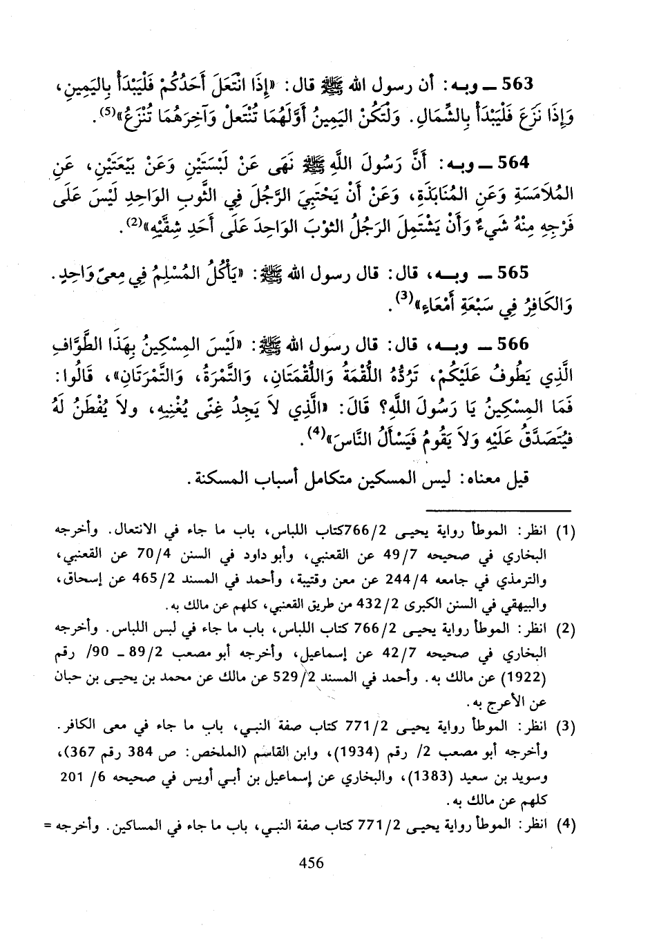 563 - وَبِهِ: أَنَّ رَسُولَ اللَّهِ صَلَّى اللَّهُ عَلَيْهِ وَسَلَّمَ، قَالَ: «إِذَا انْتَعَلَ أَحَدُكُمْ فَلْيَبْدَأْ بِالْيَمِينِ، وَإِذَا نَزَعَ فَلْيَبْدَأْ بِالشِّمَالِ.