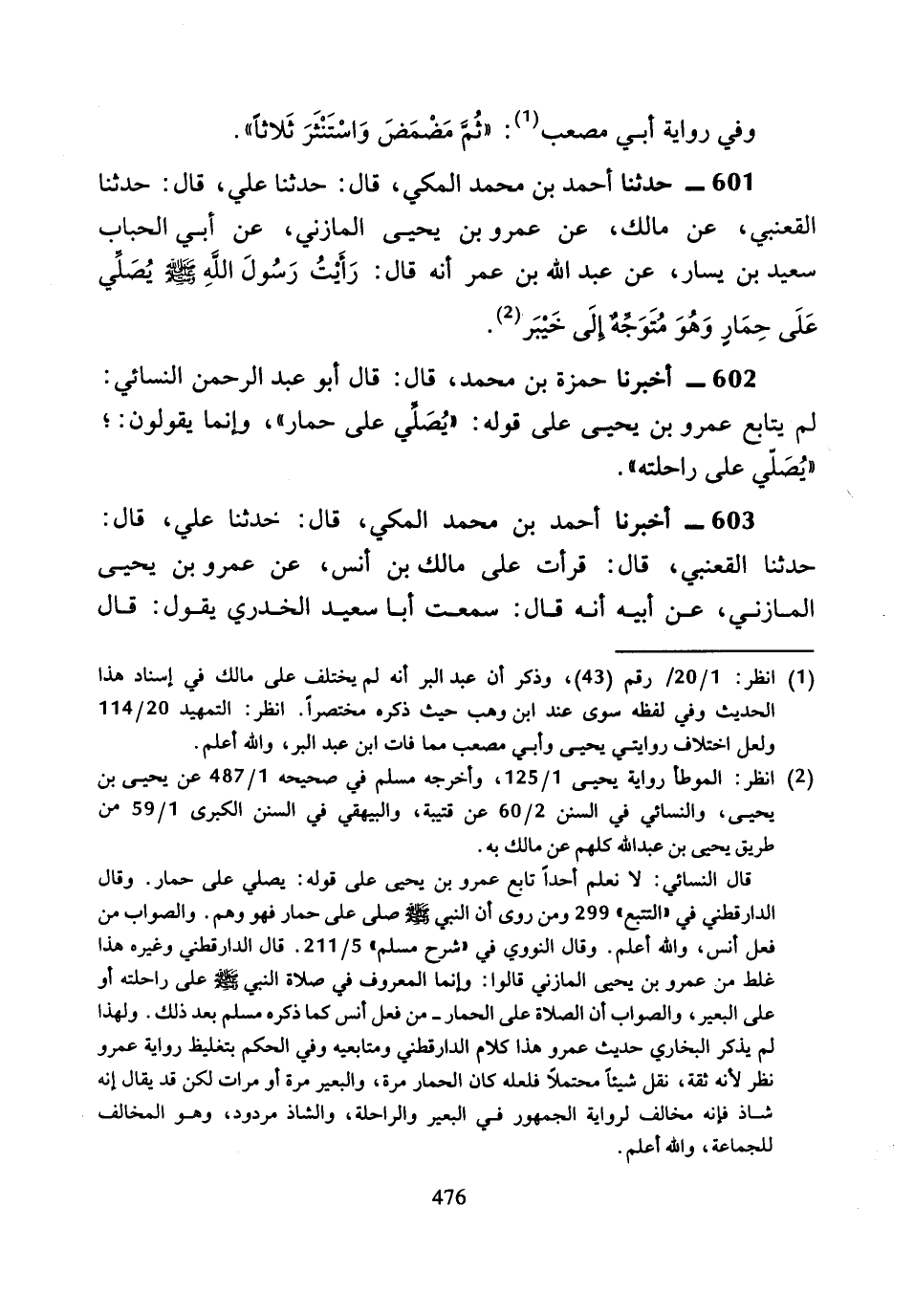 602 - أَخْبَرَنَا حَمْزَةُ بْنُ مُحَمَّدٍ، قَالَ: قَالَ أَبُو عَبْدِ الرَّحْمَنِ النَّسَائِيُّ: لَمْ يُتَابِعْ عَمْرُو بْنُ يَحْيَى عَلَى قَوْلِهِ «يُصَلِّي عَلَى حِمَارٍ»، وَإِنَّمَا يَقُولُونَ: «يُصَلِّي عَلَى رَاحِلَتِهِ»