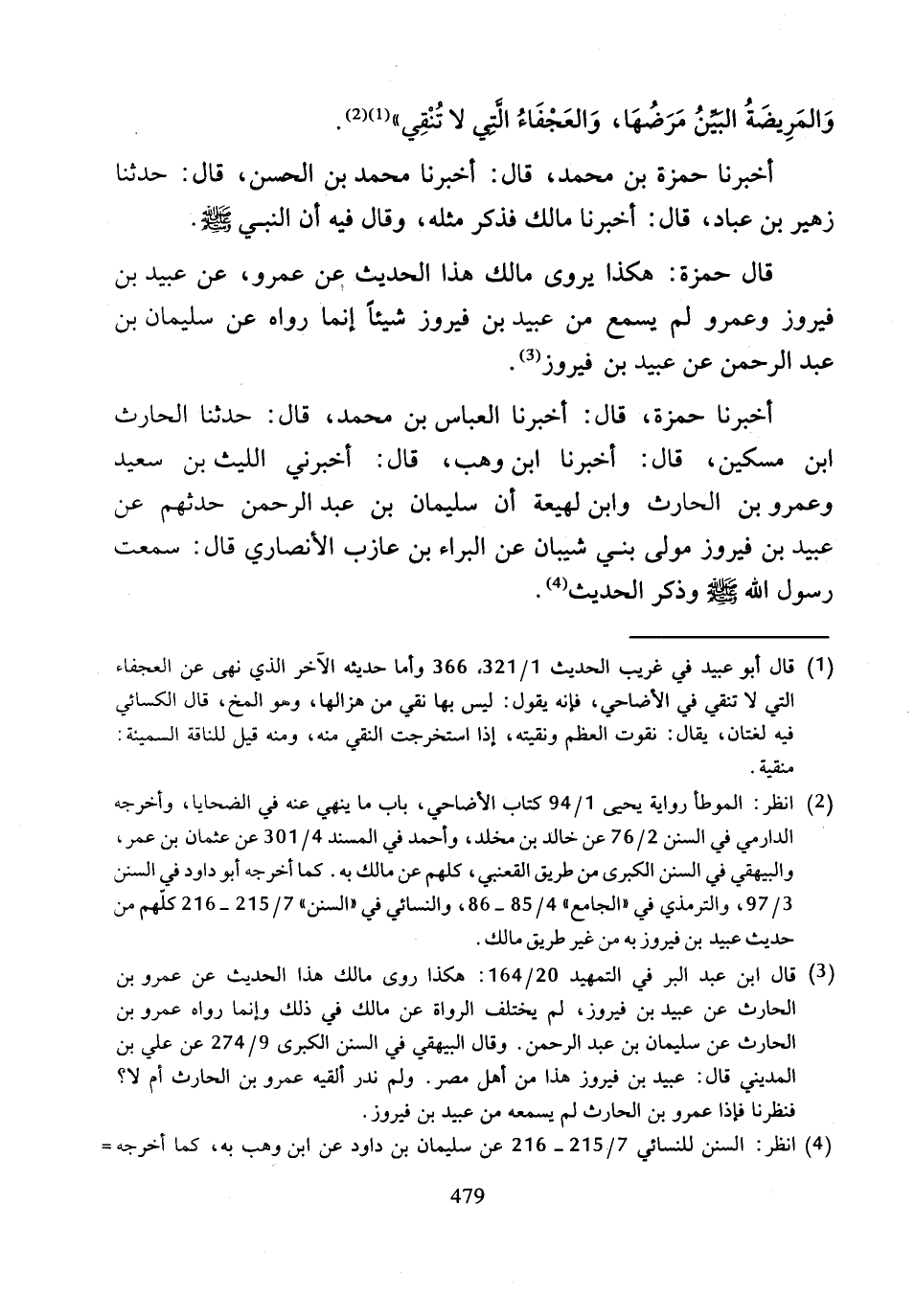 قَالَ حَمْزَةُ: هَكَذَا يَرْوِي مَالِكٌ هَذَا الْحَدِيثَ عَنْ عَمْرٍو، عَنْ عُبَيْدِ بْنِ فَيْرُوزَ وَعَمْرٌو لَمْ يَسْمَعْ مِنْ عُبَيْدِ بْنِ فَيْرُوزَ شَيْئًا، إِنَّمَا رَوَاهُ عَنْ سُلَيْمَانَ بْنِ عَبْدِ الرَّحْمَنِ، عَنْ عُبَيْدِ بْنِ فَيْرُوزَ.