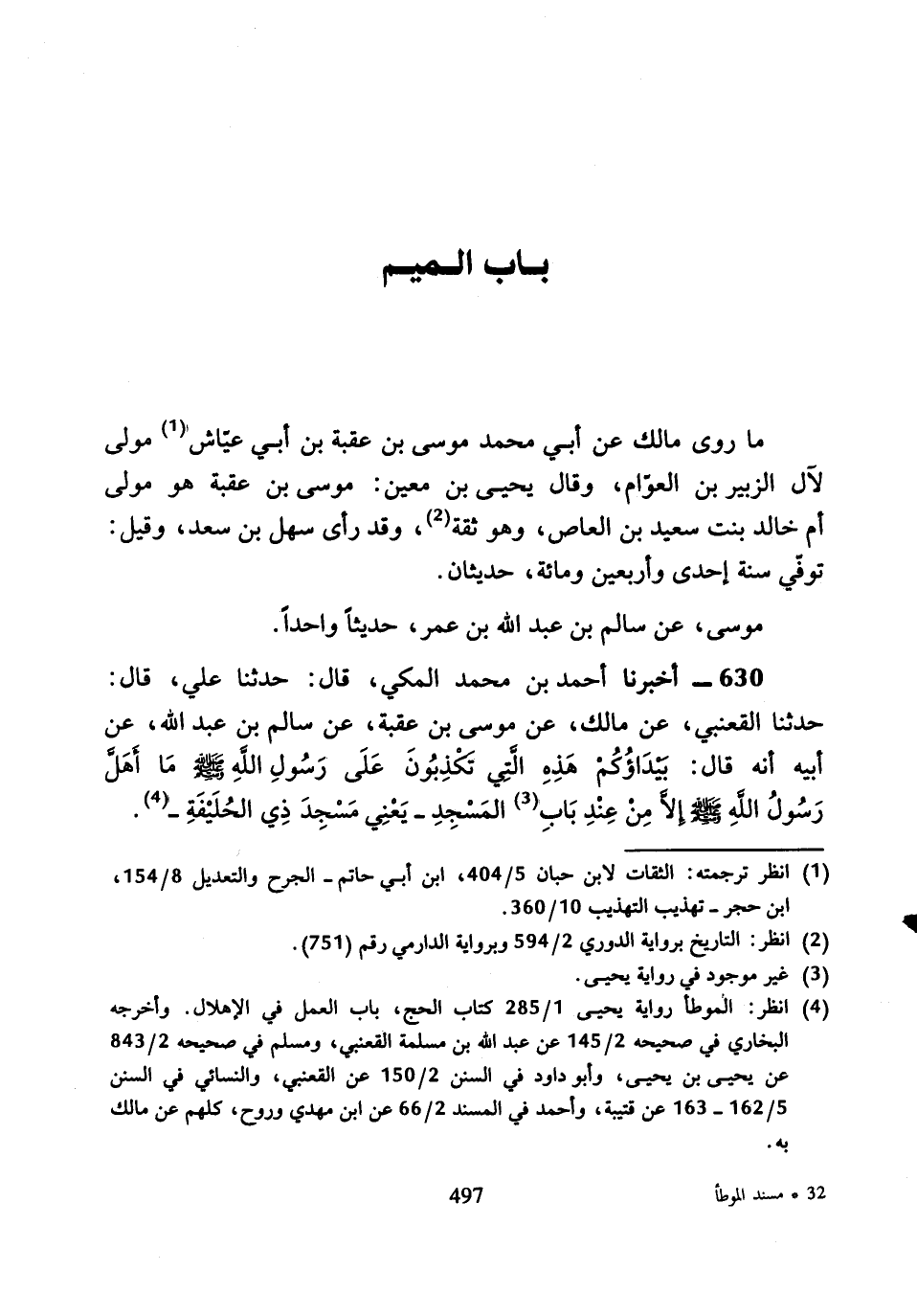 مَا رَوَى مَالِكٌ عَنْ أَبِي مُحَمَّدٍ مُوسَى بْنِ عُقْبَةَ بْنِ أَبِي عَيَّاشٍ مَوْلًى لآلِ الزُّبَيْرِ بْنِ الْعَوَّامِ
