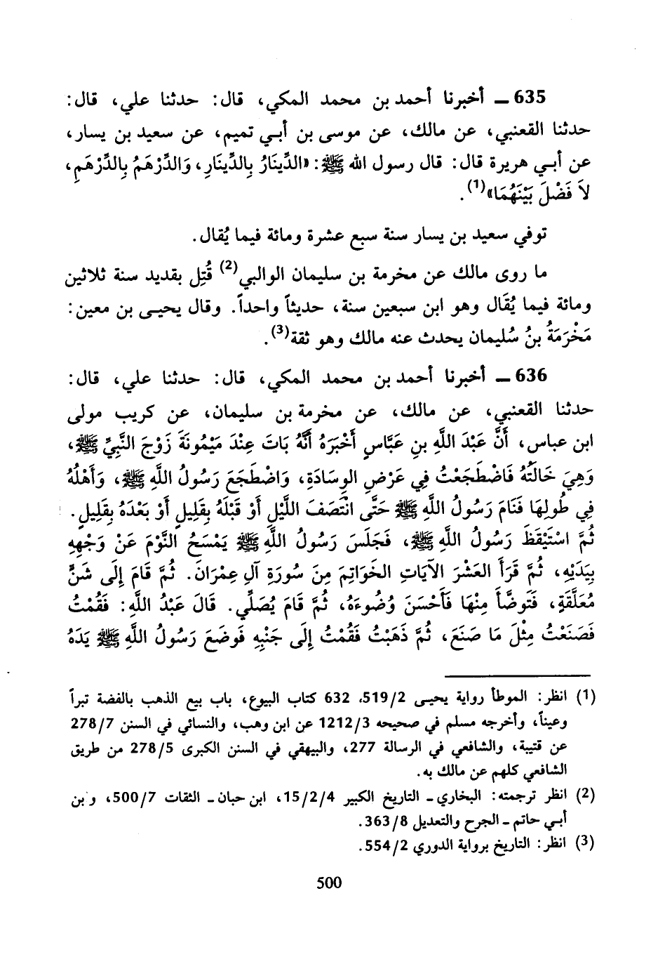 636 - أَخْبَرَنَا أَحْمَدُ بْنُ مُحَمَّدٍ الْمَكِّيُّ، قَالَ: حَدَّثَنَا عَلِيٌّ، قَالَ: حَدَّثَنَا الْقَعْنَبِيُّ، عَنْ مَالِكٍ، عَنْ مَخْرَمَةَ بْنِ سُلَيْمَانَ، عَنْ كُرَيْبٍ مَوْلَى ابْنِ عَبَّاسٍ، أَنَّ عَبْدَ اللَّهِ بْنَ عَبَّاسٍ أَخْبَرَهُ أَنَّهُ " بَاتَ عِنْدَ مَيْمُونَةَ زَوْجِ النَّبِيِّ صَلَّى اللَّهُ عَلَيْهِ وَسَلَّمَ، وَهِيَ خَالَتُهُ فَاضْطَجَعْتُ فِي عَرْضِ الْوِسَادَةِ، وَاضْطَجَعَ رَسُولُ اللَّهِ صَلَّى اللَّهُ عَلَيْهِ وَسَلَّمَ، وَأَهْلُهُ فِي طُولِهَا، فَنَامَ رَسُولُ اللَّهِ صَلَّى اللَّهُ عَلَيْهِ وَسَلَّمَ حَتَّى انْتَصَفَ اللَّيْلُ أَوْ قَبْلَهُ بِقَلِيلٍ أَوْ بَعْدَهُ بِقَلِيلٍ.