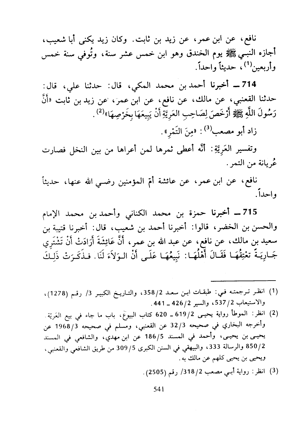 714 - أَخْبَرَنَا أَحْمَدُ بْنُ مُحَمَّدٍ الْمَكِّيُّ، قَالَ: حَدَّثَنَا عَلِيٌّ، قَالَ: حَدَّثَنَا الْقَعْنَبِيُّ، عَنْ مَالِكٍ، عَنِ ابْنِ عُمَرَ، عَنْ زَيْدِ بْنِ ثَابِتٍ «أَنَّ رَسُولَ اللَّهِ صَلَّى اللَّهُ عَلَيْهِ وَسَلَّمَ أَرْخَصَ لِصَاحِبِ الْعَرِيَّةِ أَنْ يَبِيعَهَا بِخَرْصِهَا».