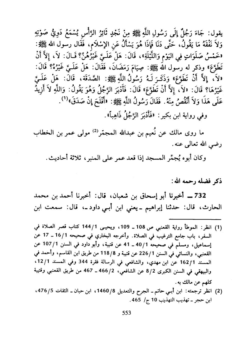 732 - أَخْبَرَنَا أَبُو إِسْحَاقَ بْنُ شَعْبَانَ، قَالَ: أَخْبَرَنَا أَحْمَدُ بْنُ مُحَمَّدٍ الْحَارِثُ، قَالَ: حَدَّثَنَا إِبْرَاهِيمُ، يَعْنِي: ابْنَ أَبِي دَاوُدَ، قَالَ: سَمِعْتُ ابْنَ