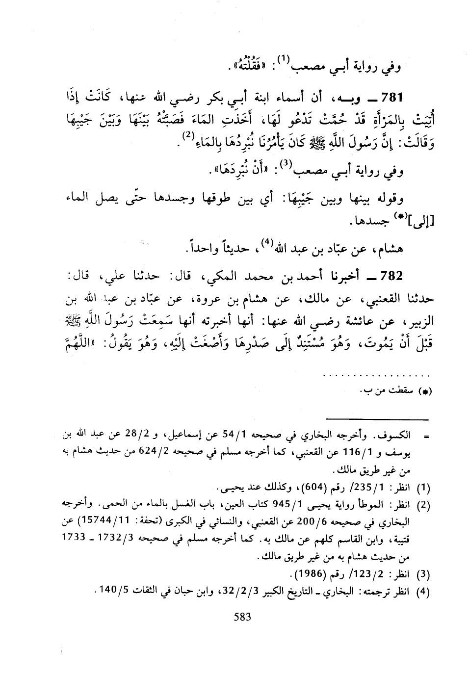 782 - أَخْبَرَنَا أَحْمَدُ بْنُ مُحَمَّدٍ الْمَكِّيُّ، قَالَ: حَدَّثَنَا عَلِيٌّ، قَالَ: حَدَّثَنَا الْقَعْنَبِيُّ، عَنْ مَالِكٍ، عَنْ هِشَامِ بْنِ عُرْوَةَ، عَنْ عَبَّادِ بْنِ عَبْدِ اللَّهِ بْنِ الزُّبَيْرِ، عَنْ عَائِشَةَ رَضِيَ اللَّهُ عَنْهَا: أَنَّهَا أَخْبَرَتْهُ، أَنَّهَا سَمِعَتْ رَسُولَ اللَّهِ صَلَّى اللَّهُ عَلَيْهِ وَسَلَّمَ قَبْلَ أَنْ يَمُوتَ، وَهُوَ مُسْتَنِدٌ إِلَى صَدْرِهَا وَأَصْغَتْ إِلَيْهِ، وَهُوَ يَقُولُ: «اللَّهُمَّ