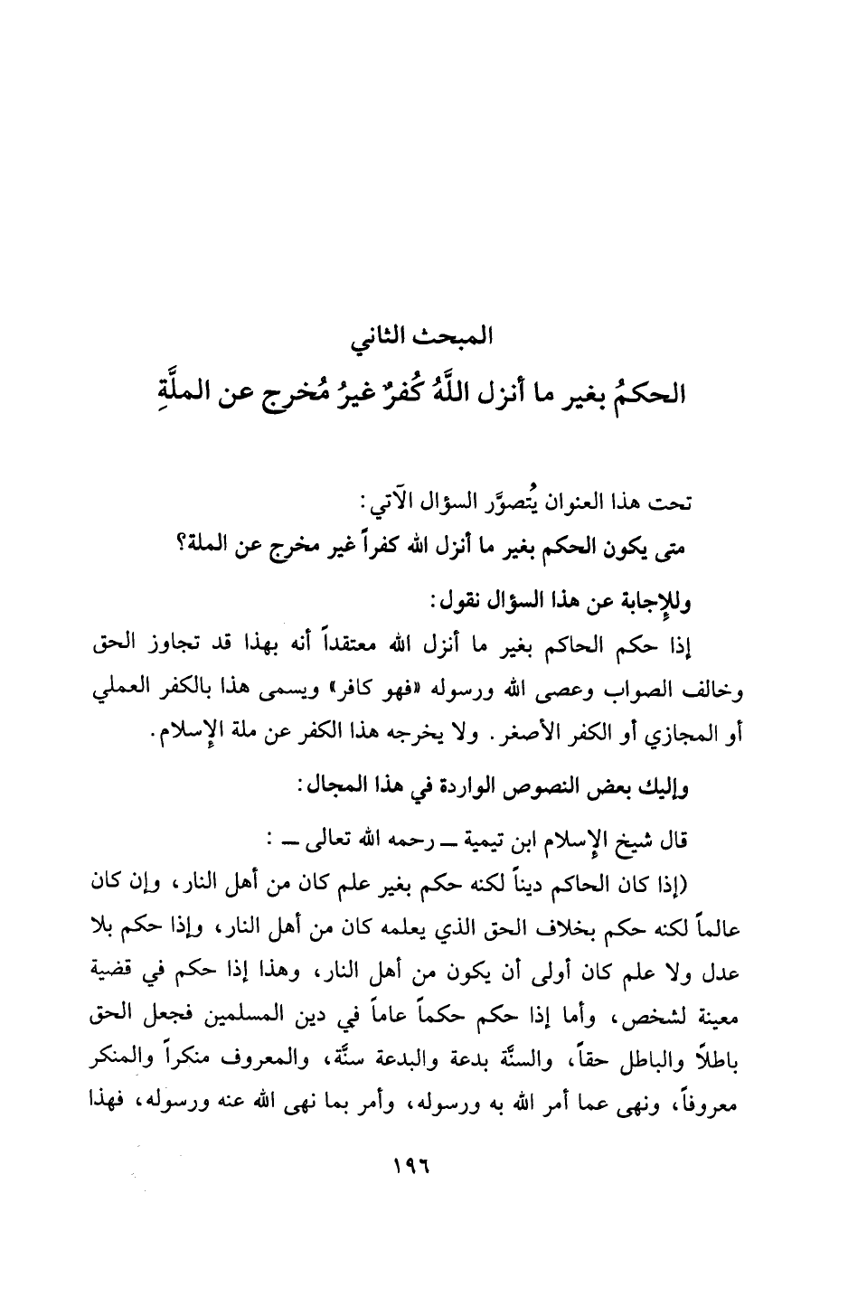 الحكمُ بغير ما أنزل اللهُ كُفرٌ غيرُ مُخرج عن الملَّةِ