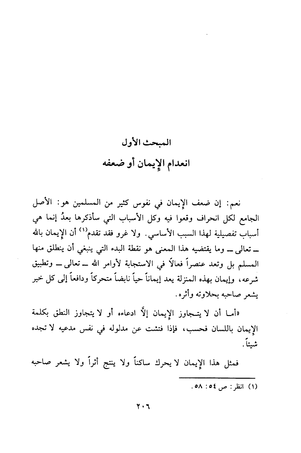 "أما أن لا يتجاوز الإيمان إلَّا ادعاءه أو لا يتجاوز النطق بكلمة الإيمان باللسان فحسب، فإذا فتشت عن مدلوله في نفس مدعيه لا تجده شيئًا.
