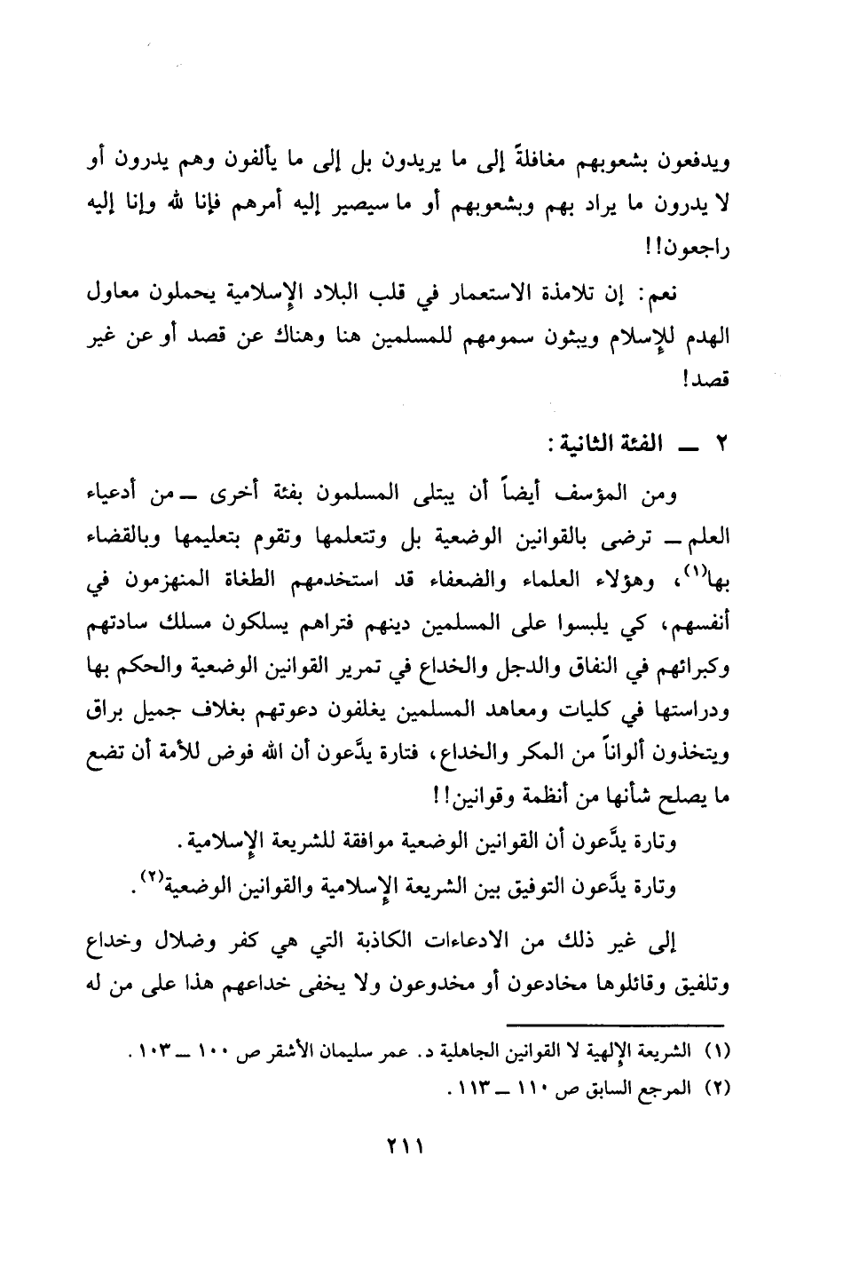(¬1) الشريعة الإلهية لا القوانين الجاهلية د. عمر سليمان الأشقر ص 100 - 103.