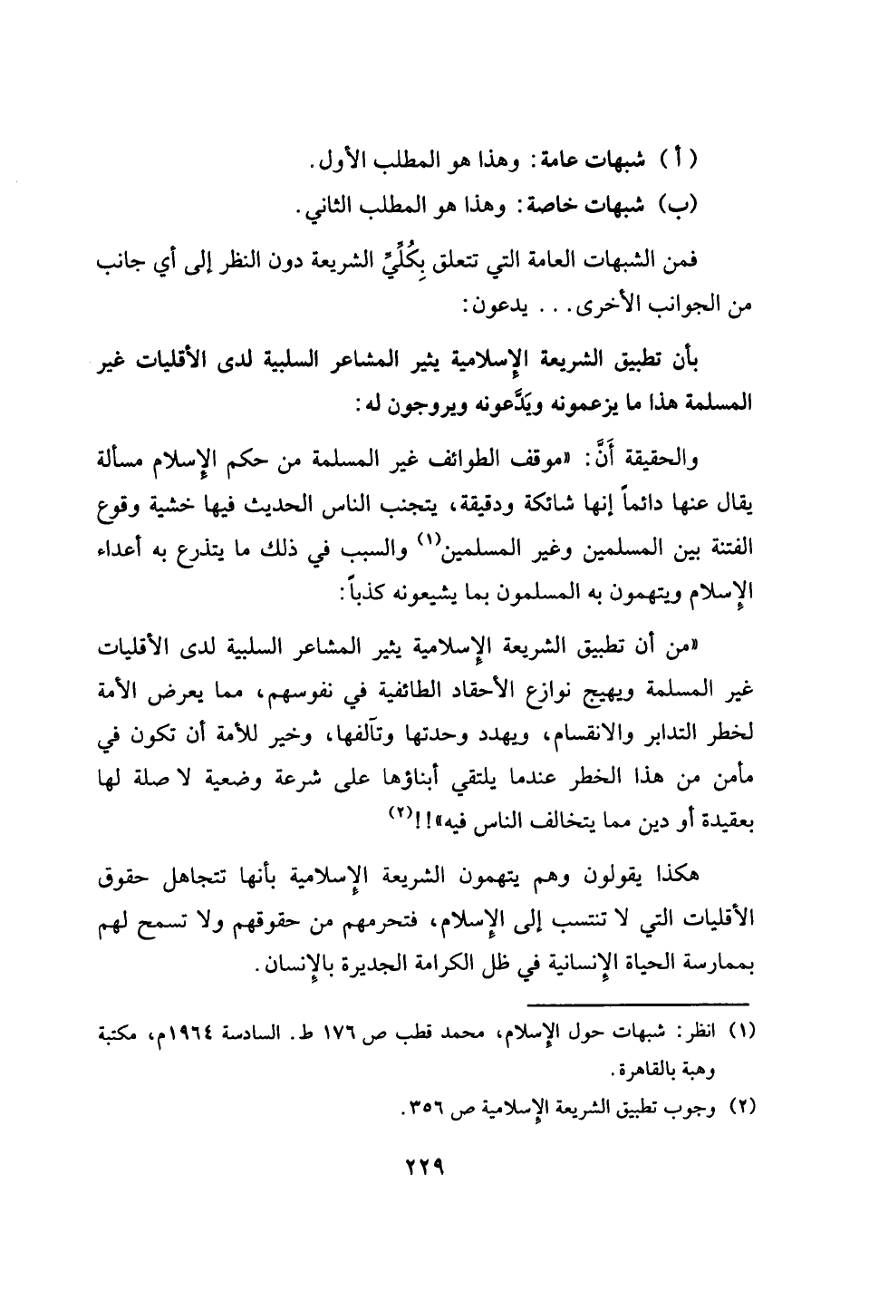 بأن تطبيق الشريعة الإِسلامية يثير المشاعر السلبية لدى الأقليات غير المسلمة هذا ما يزعمونه ويَدَّعونه ويروجون له: