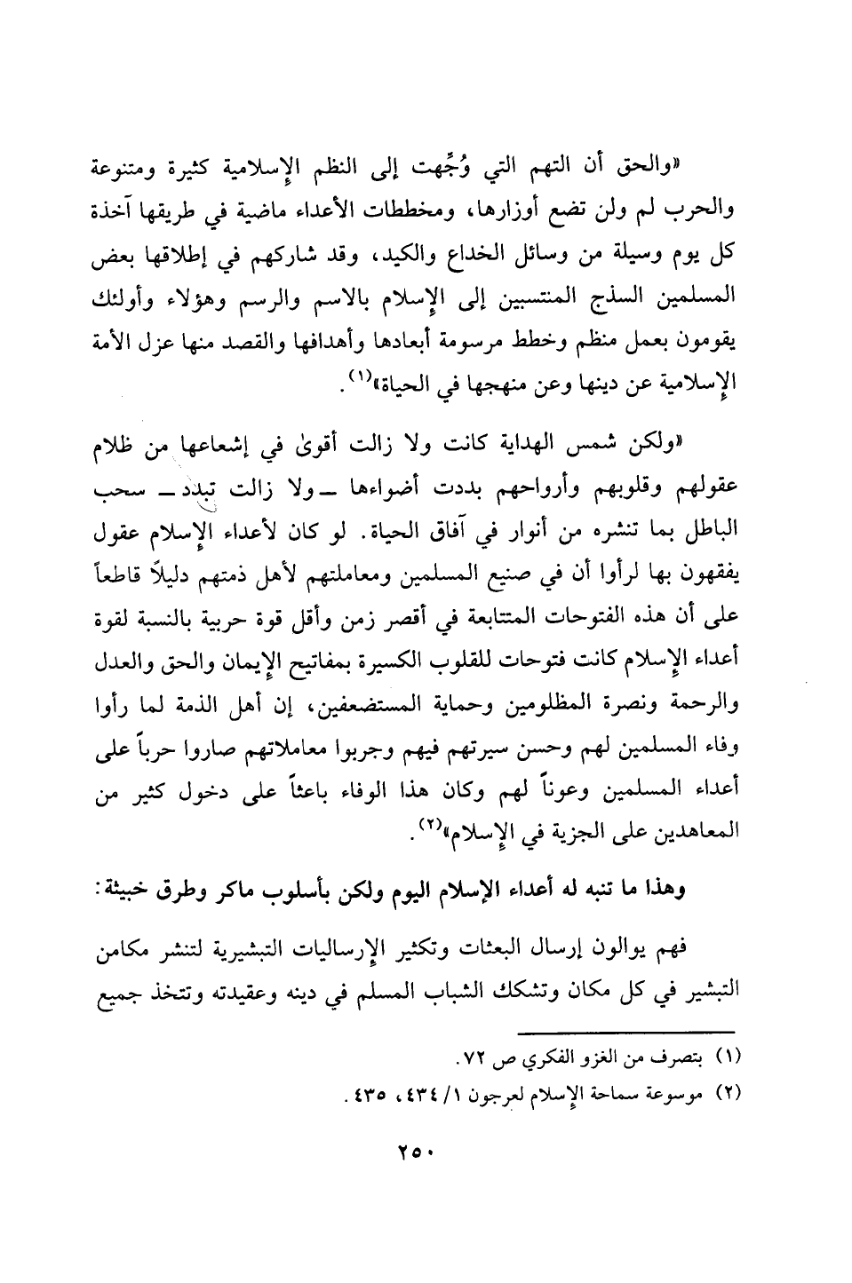 (¬2) موسوعة سماحة الإِسلام لعرجون 1/ 434، 435.