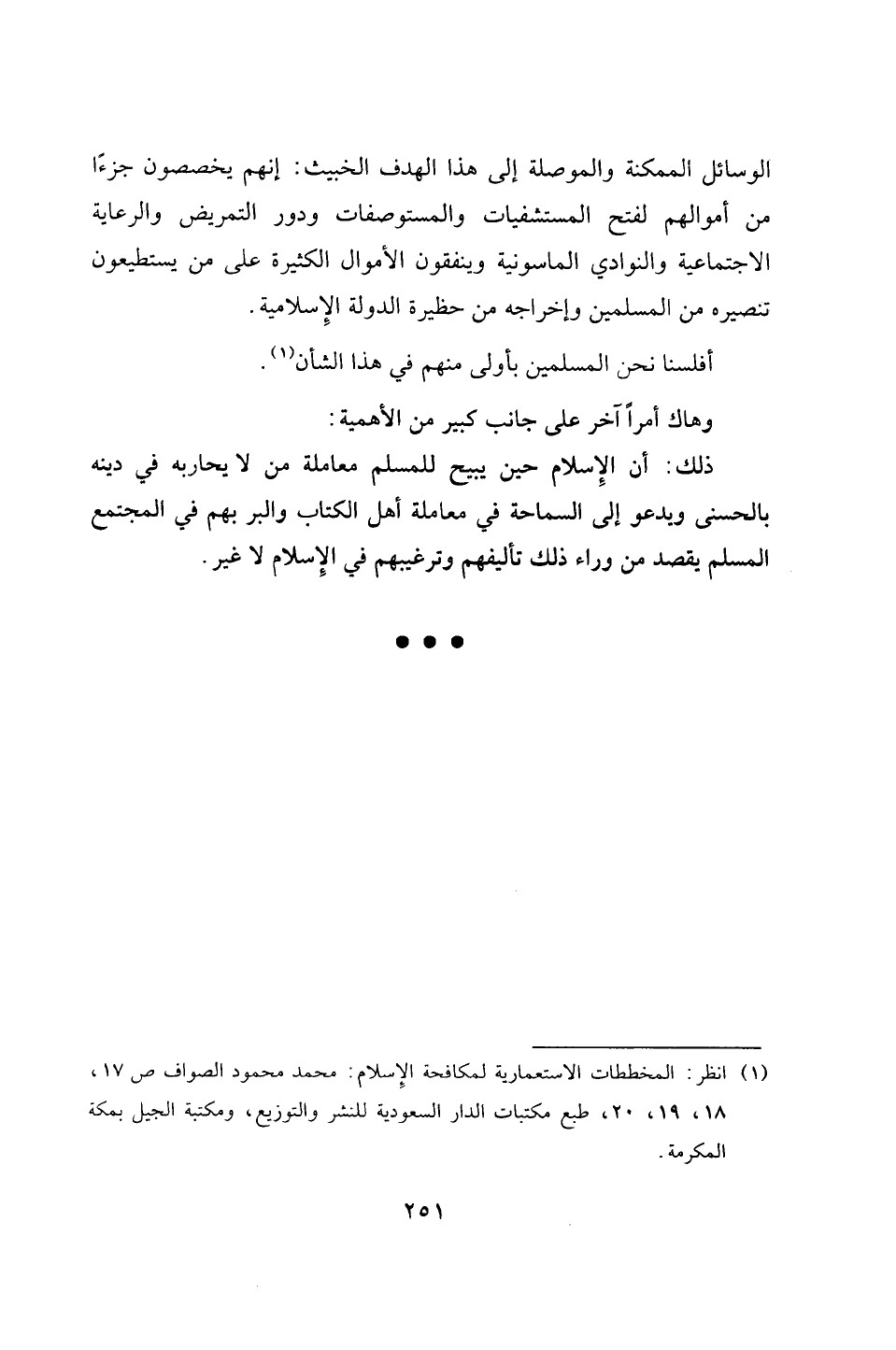 (¬1) انظر المخططات الإستعمارية لمكافحة الإِسلام: محمد محمود الصواف ص 17، 18، 19، 20، طبع مكتبات الدار السعودية للنشر والتوزيع، ومكتبة الجيل بمكة المكرمة.