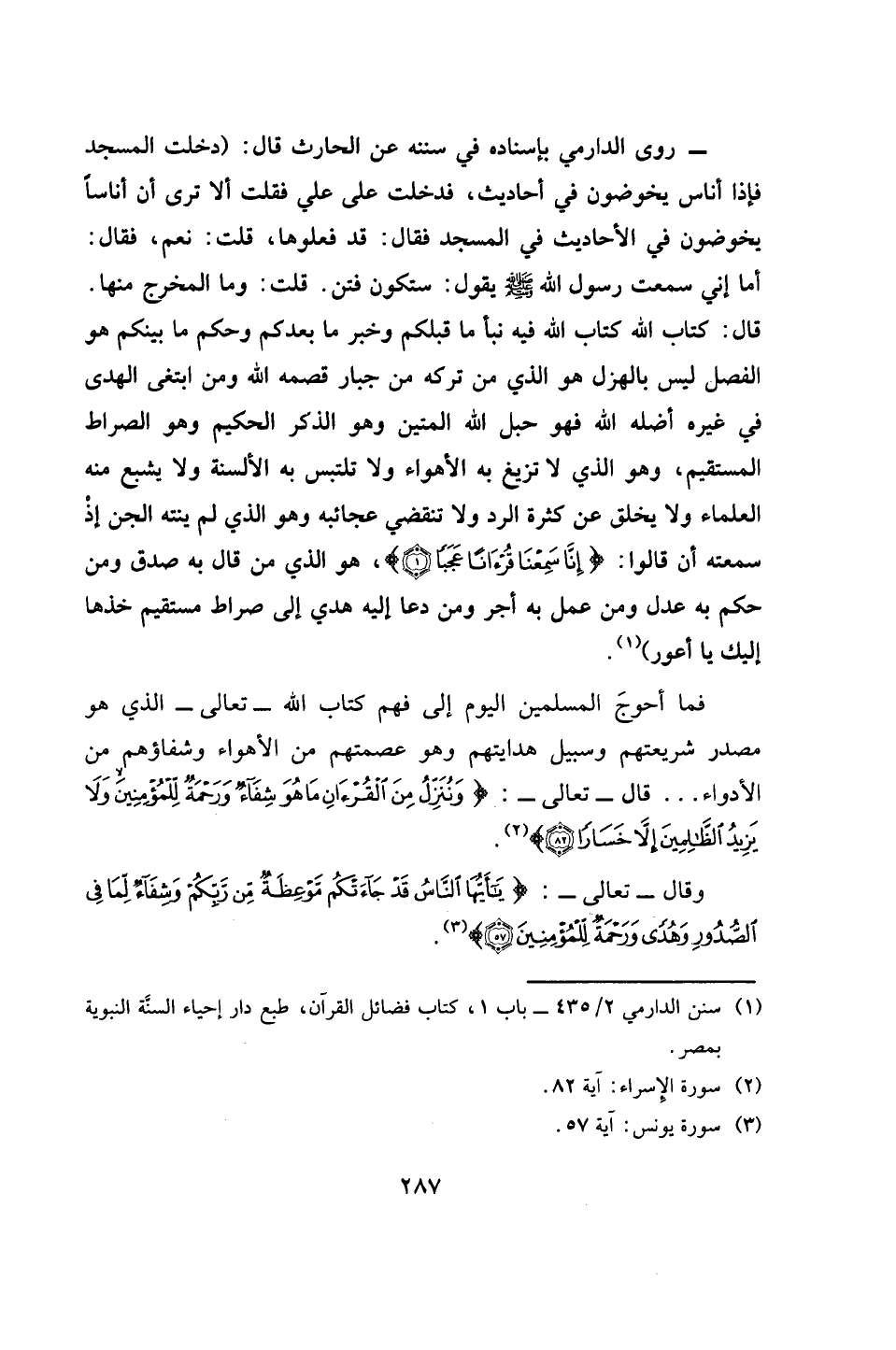 (¬1) سنن الدارمي 2/ 435 - باب 1، كتاب فضائل القرآن، طبع دار إحياء السنَّة النبوية بمصر.