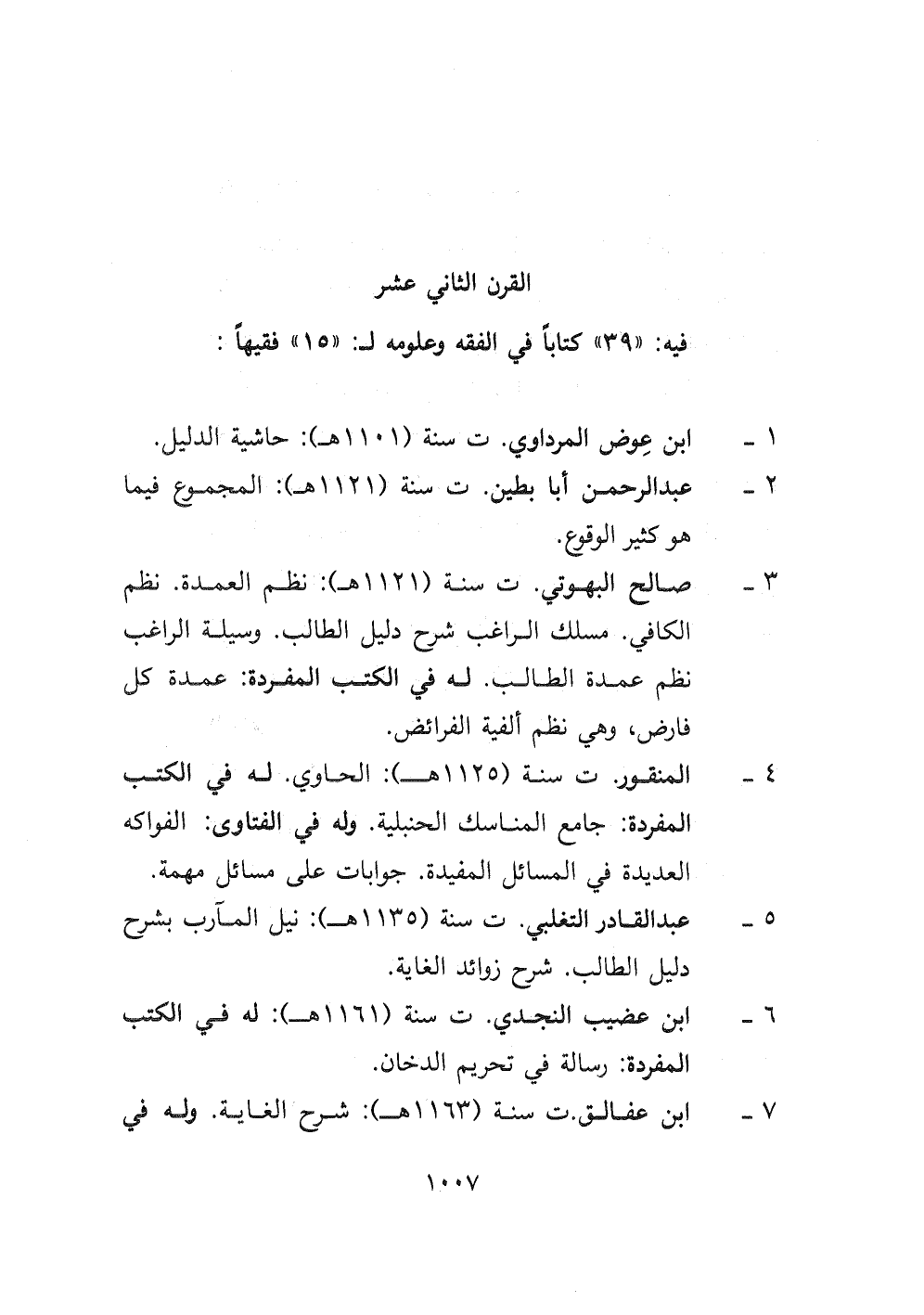 ٤- المنقور ت سنة (١١٢٥ هـ) : الحاوي. له في الكتب المفردة: جامع المناسك الحنبلية. وله في الفتاوى: الفواكه العديدة في المسائل المفيدة. جوابات على مسائل مهمة.