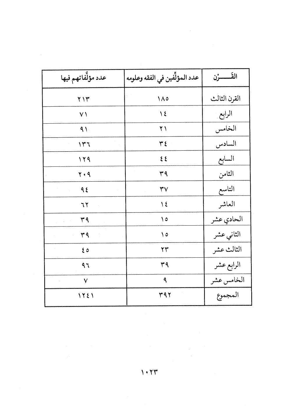 القرن ... عدد المؤلفين في الفقه وعلومه ... عدد مؤلفاتهم فيها