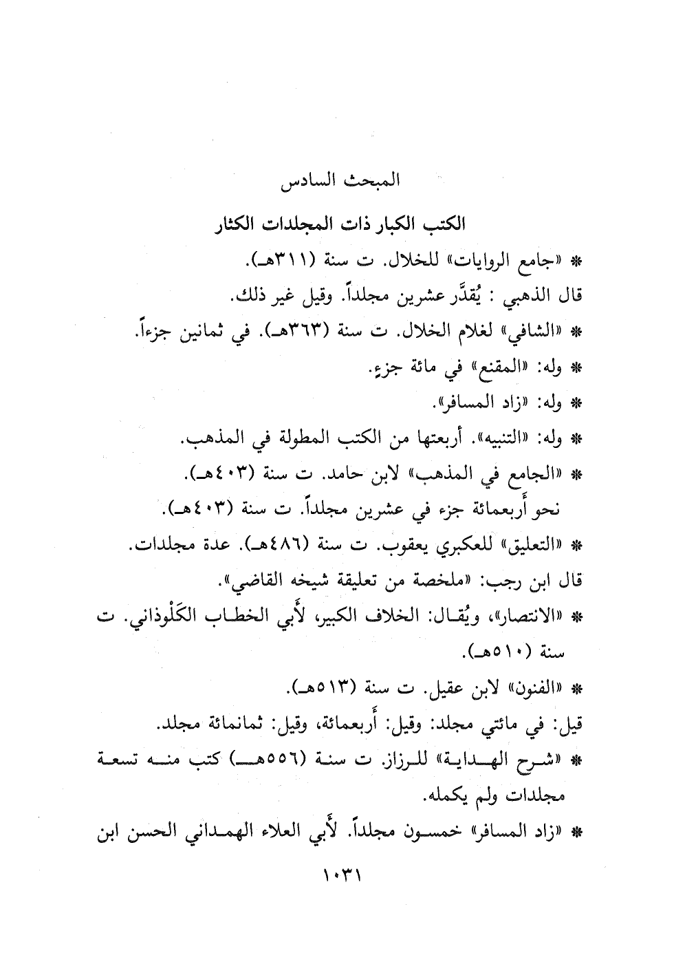 المبحث السادس: الكتب الكبار ذات المجلدات الكثار