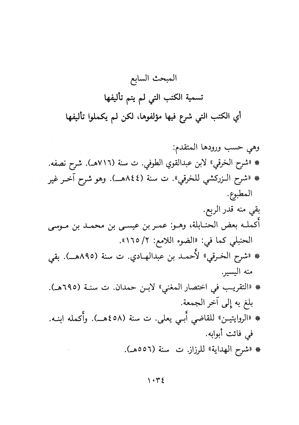 - " شرح الخرقي " لابن عبد القوي الطوفي. ت سنة (٧١٦ هـ) . شرح نصفه.