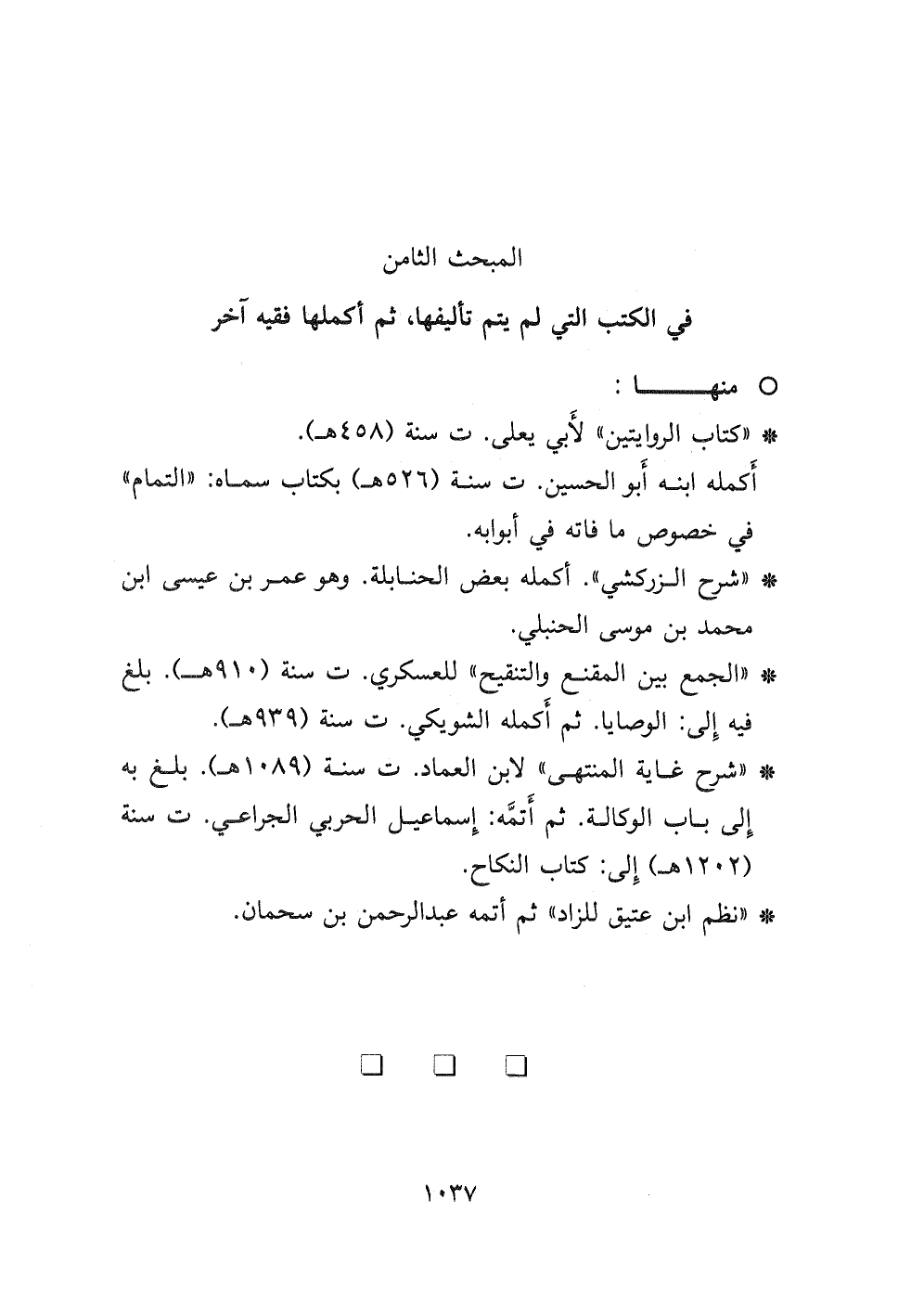 المبحث الثامن: في الكتب التي لم يتم تأليفها، ثم أكملها فقيه آخر