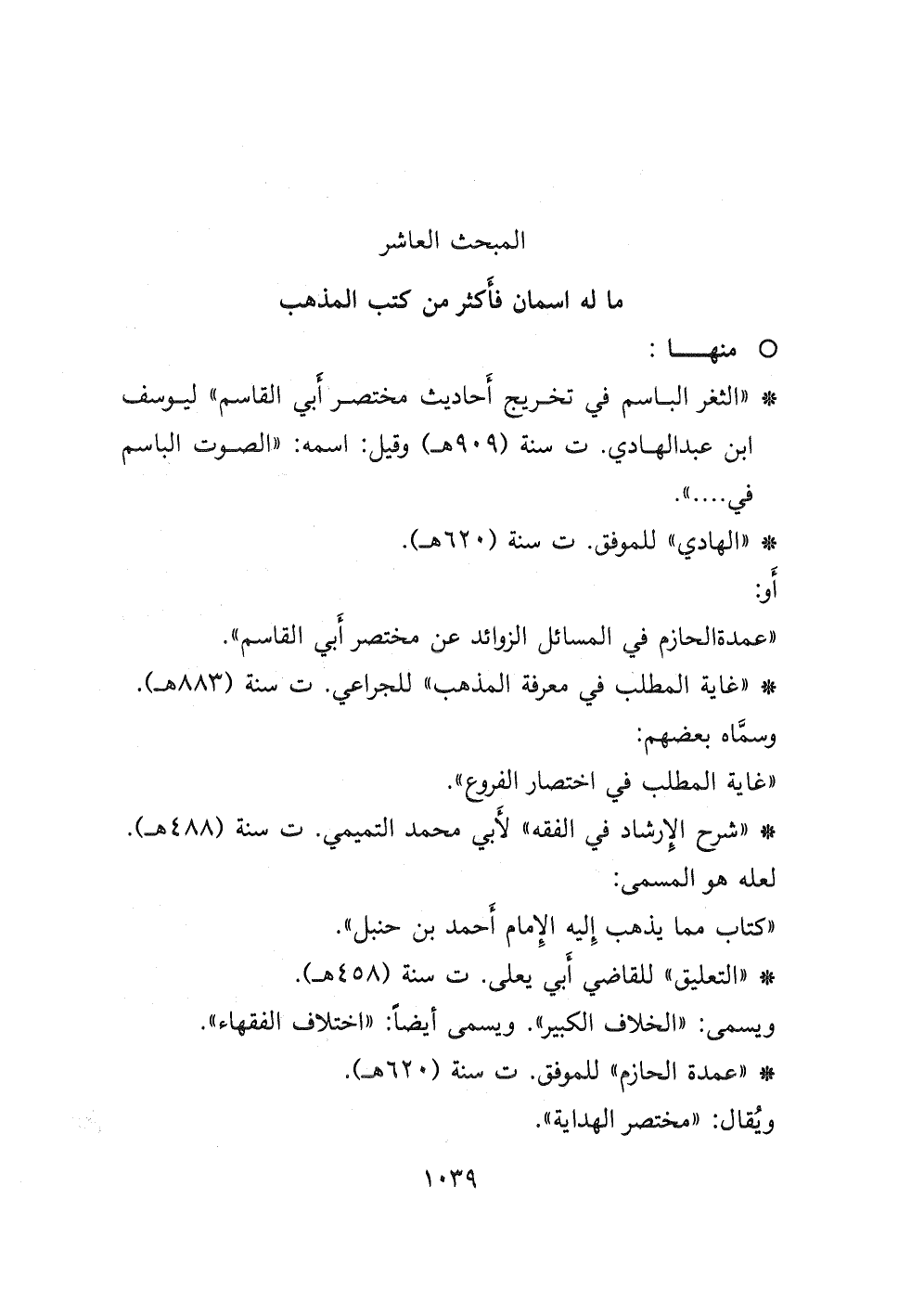 المبحث العاشر: ما له اسمان فأكثر من كتب المذهب