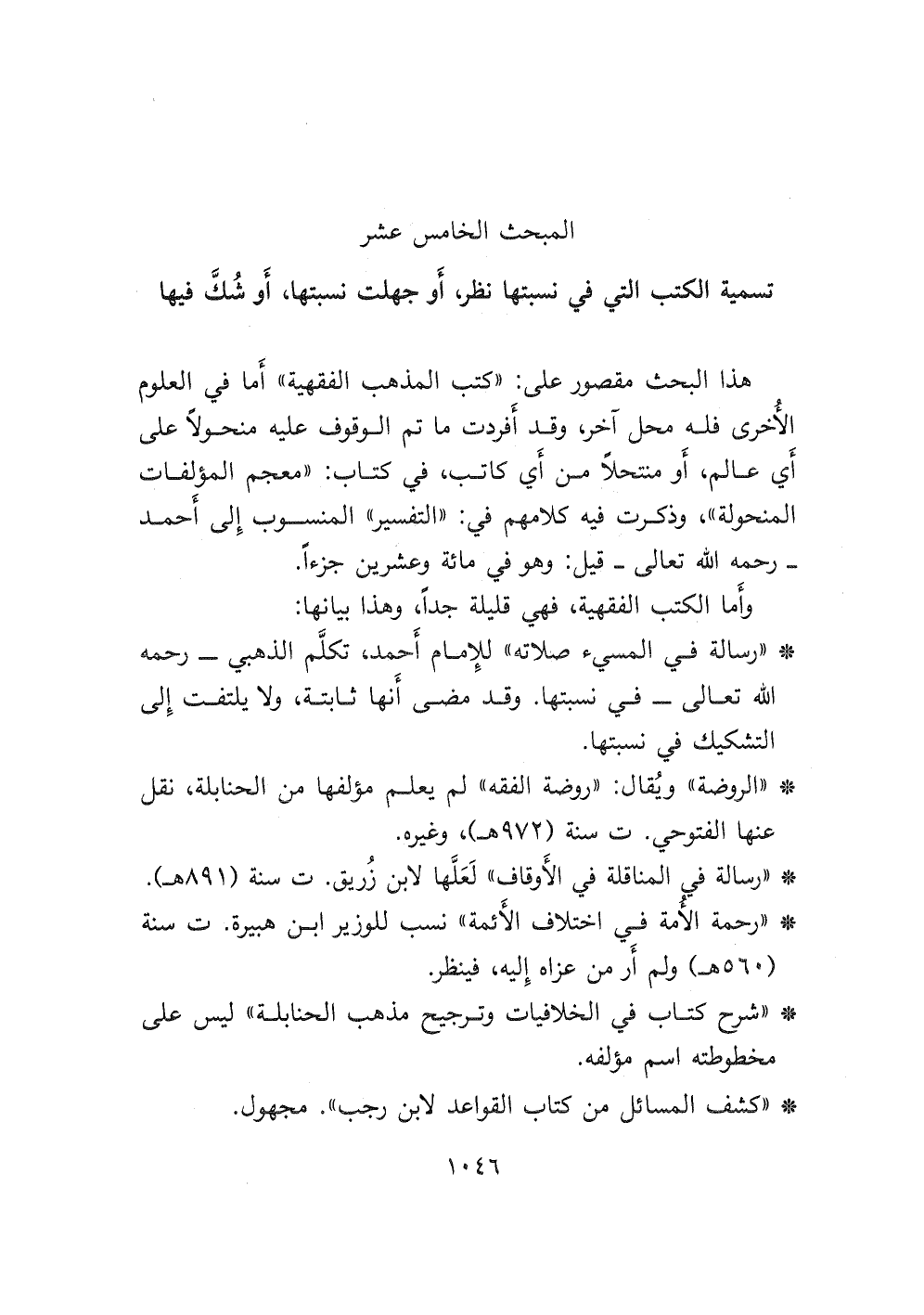 المبحث الخامس عشر: تسمية الكتب التي في نسبتها نظر أو جهلت نسبتها، أو شك فيها