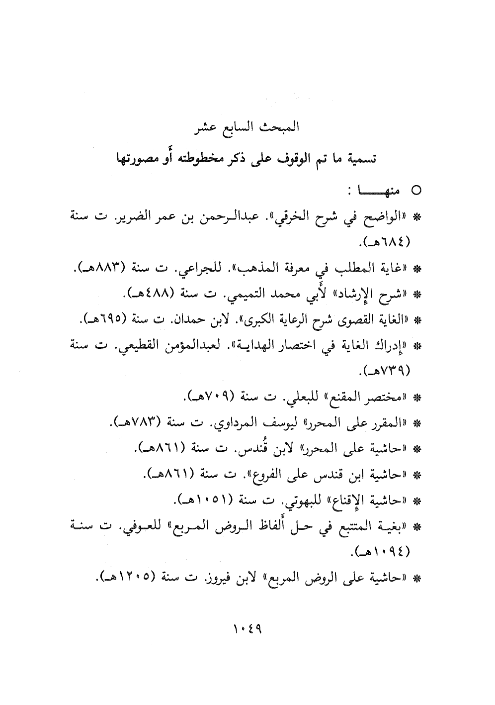 المبحث السابع عشر: تسمية ما تم الوقوف على ذكر مخطوطته أو مصورتها