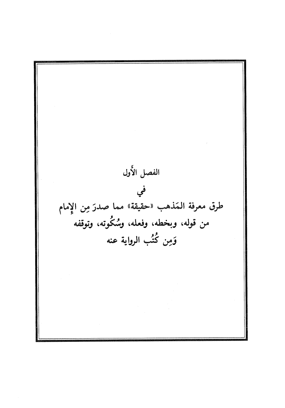 الفصل الأول: في طرق معرفة المذهب " حقيقة " مما صدرَمِن الِإمام من قوله، وبخطه، وفعله، وسُكُوته، وتوقفه وَمِن كُتُب الرواية عنه