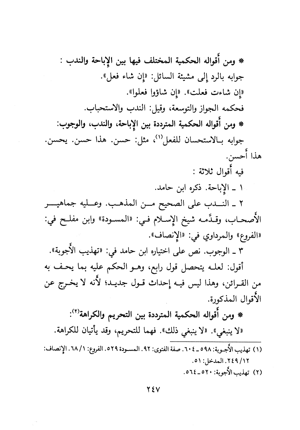(١) تهذيب الأجوبة: ٥٩٨-٦٠٤ صفة الفتوى: ٩٢ المسودة ٥٢٩ الفروع: ١/ ٦٨ الإنصاف: ١٢/ ٢٤٩ المدخل: ٥١