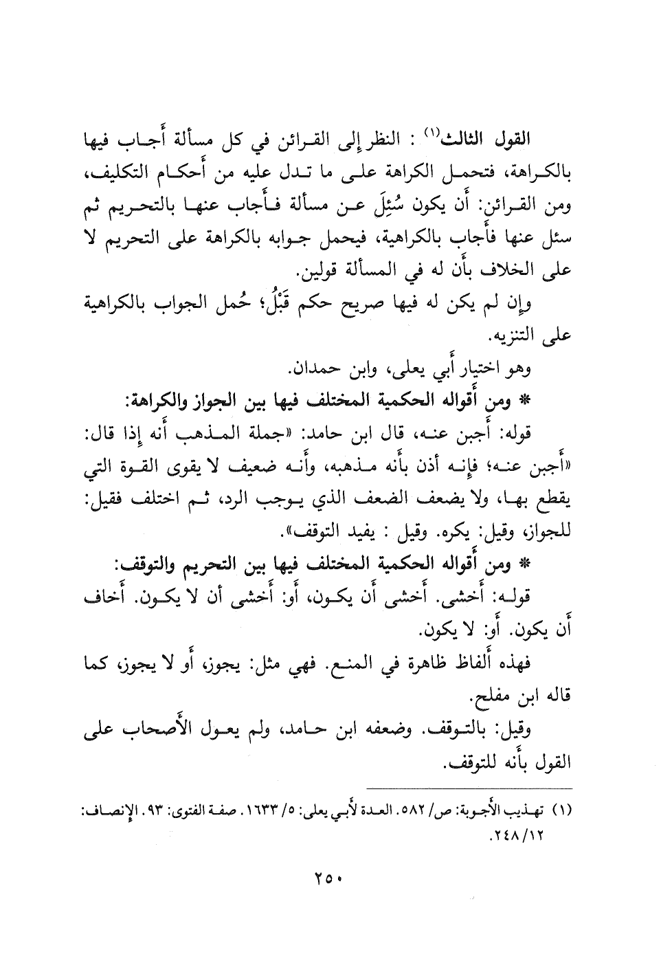 (١) تهذيب الأجوبة: ص/ ٥٨٢ العدة لأبي يعلى: ٥/ ١٦٣٣ صفة الفتوى: ٩٣ الإنصاف: ١٢/٢٤٨.