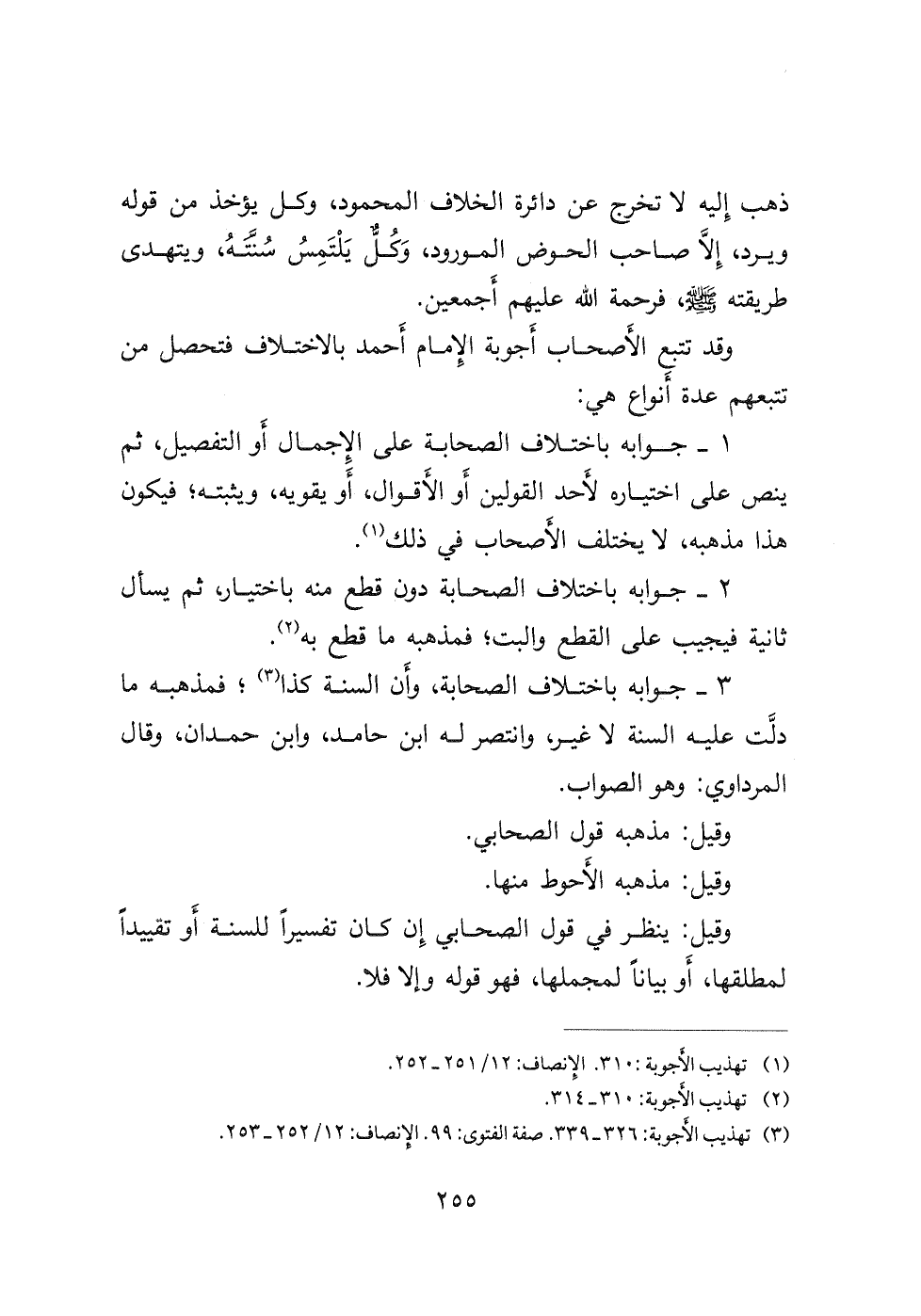 (٣) تهذيب الأجوبة: ٣٢٦- ٣٣٩ صفة الفتوى: ٩٩ الإنصاف: ١٢/ ٢٥٢- ٢٥٣