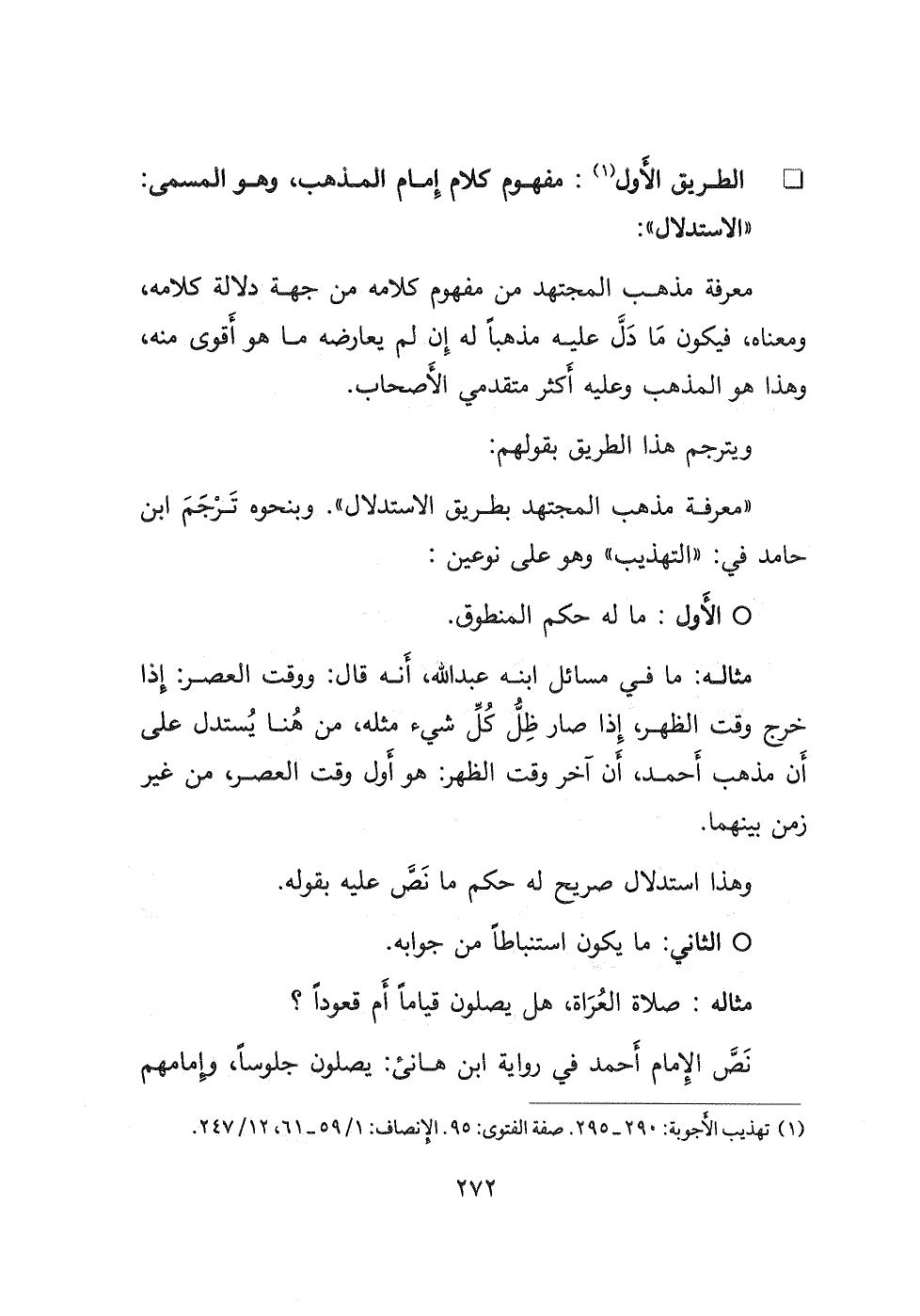 الطريق الأول (١) : مفهوم كلام إِمام المذهب، وهو المسمى: " الاستدلال ":
