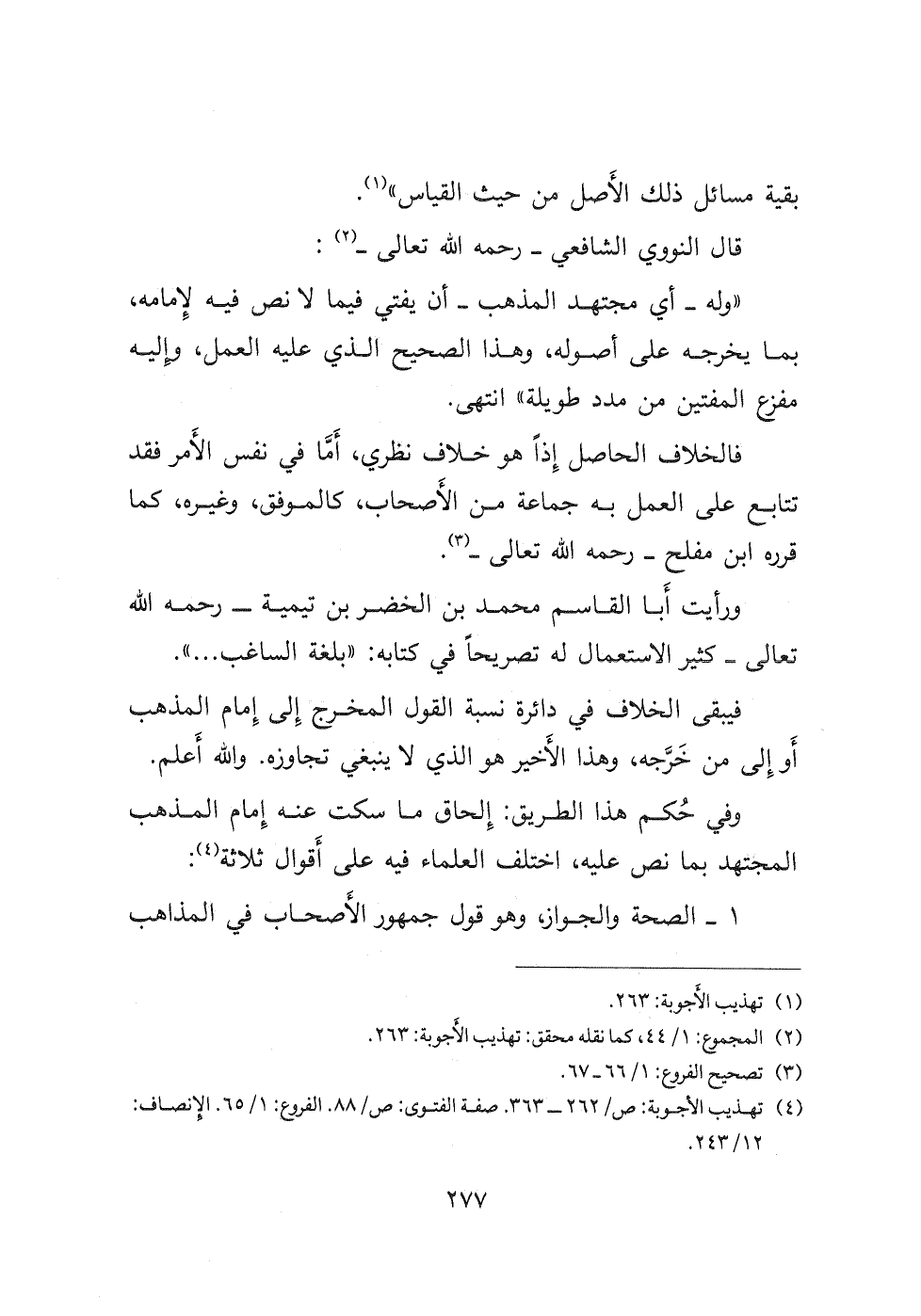 (٤) تهذيب الأجوبة: ص/ ٢٦٢ -٣٦٣ صفة الفتوى: ص/ ٨٨ الفروع: ١/ ٦٥ الإنصاف: ١٢/٢٤٣