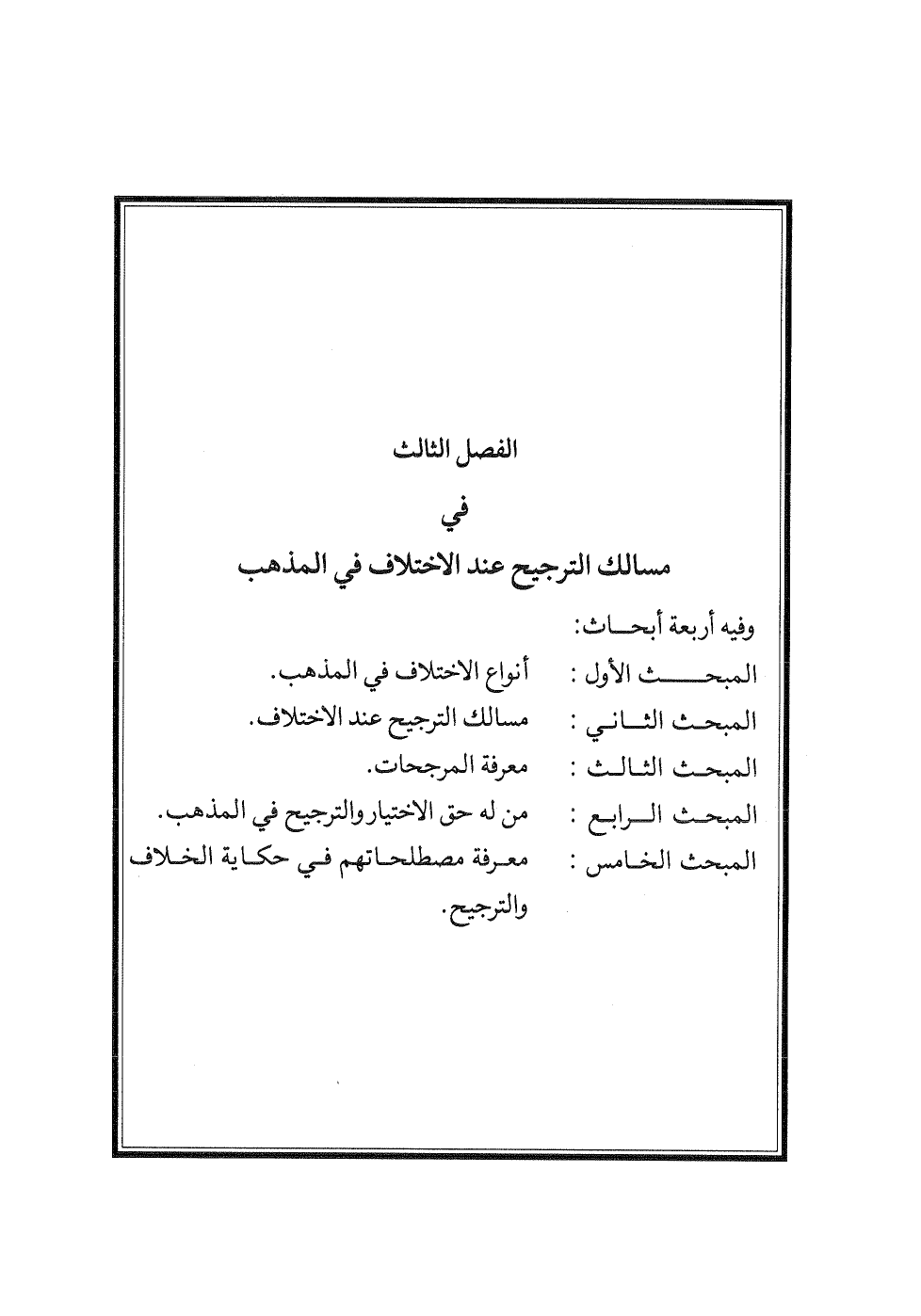 الفصل الثالث: في مسالك الترجيح عند الاختلاف في المذهب