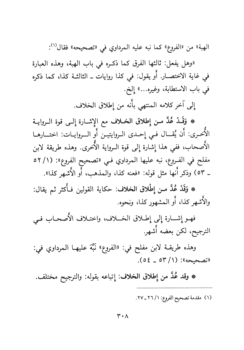 وهذه طريقة لابن مفلح في: " الفروع " نبَّهَ عليها المرداوي في: " تصحيحه ": (١/٥٣-٥٤) .