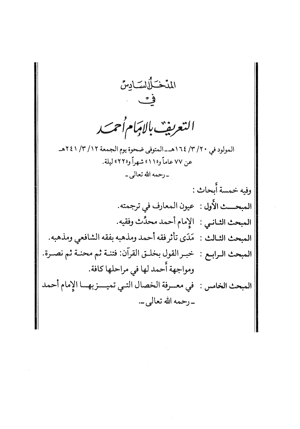 المدخل السادس: في التعريف بالإمام أحمد