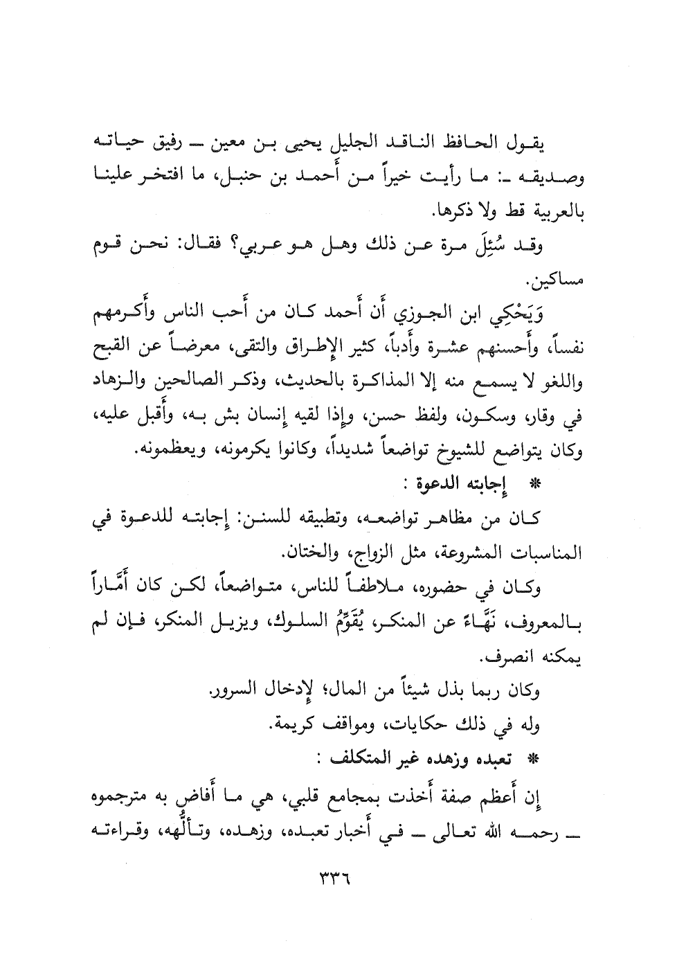 إن أعظم صفة أخذت بمجامع قلبي، هي ما أَفاض به مترجموه - رحمه الله تعالى - في أخبار تعبده، وزهده، وتألُّهه، وقراءته
