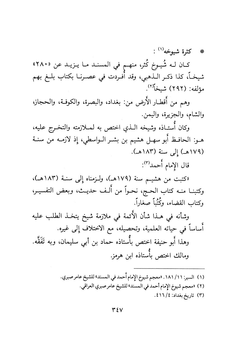 (١) " السير ١١/١٨١ " معجم شيوخ الإمام أحمد في المسند " للشيخ عامر صبري.