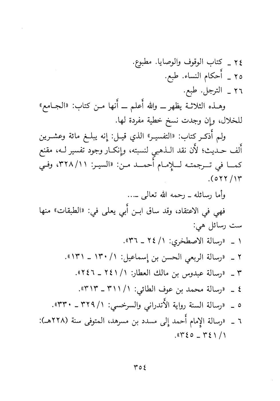 ٦- " رسالة الإمام أَحمد إلى مسدد بن مسرهد، المتوفى سنة (٢٢٨ هـ) : ١/ ٣٤١- ٣٤٥ "