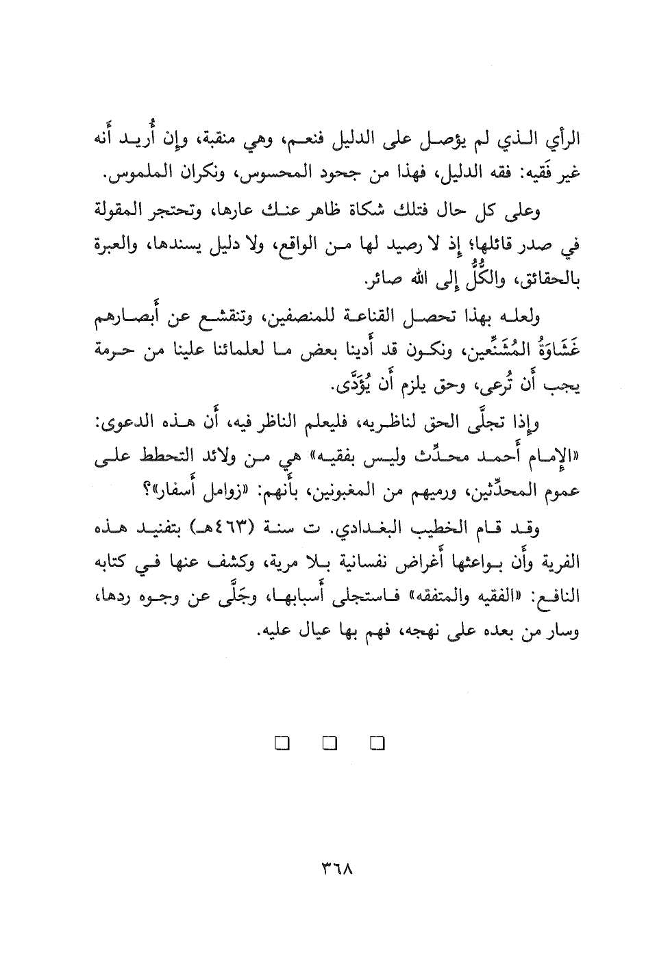 وإذا تجلَّى الحق لناظريه، فليعلم الناظر فيه، أَن هذه الدعوى: " الإمام أحمد محدِّث وليس بفقيه " هي من ولائد التحطط على عموم المحدثين، ورميهم من المغبونين، بأنهم: " زوامل أَسفار "؟