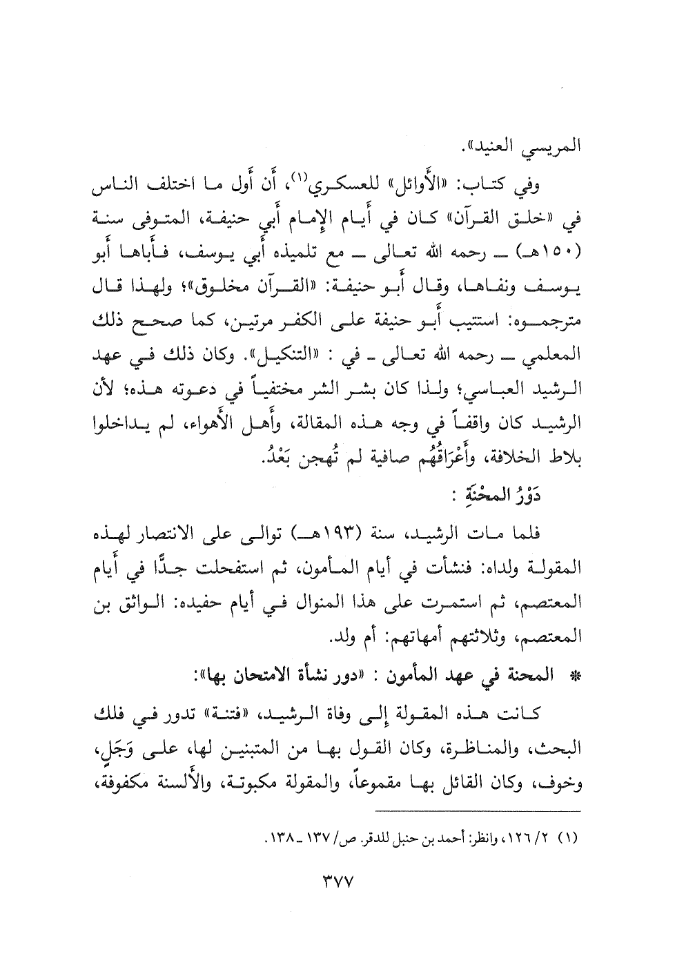 (١) ٢/ ١٢٦، وانظر أحمد بن حنبل للدقر. ص/١٣٧-١٣٨