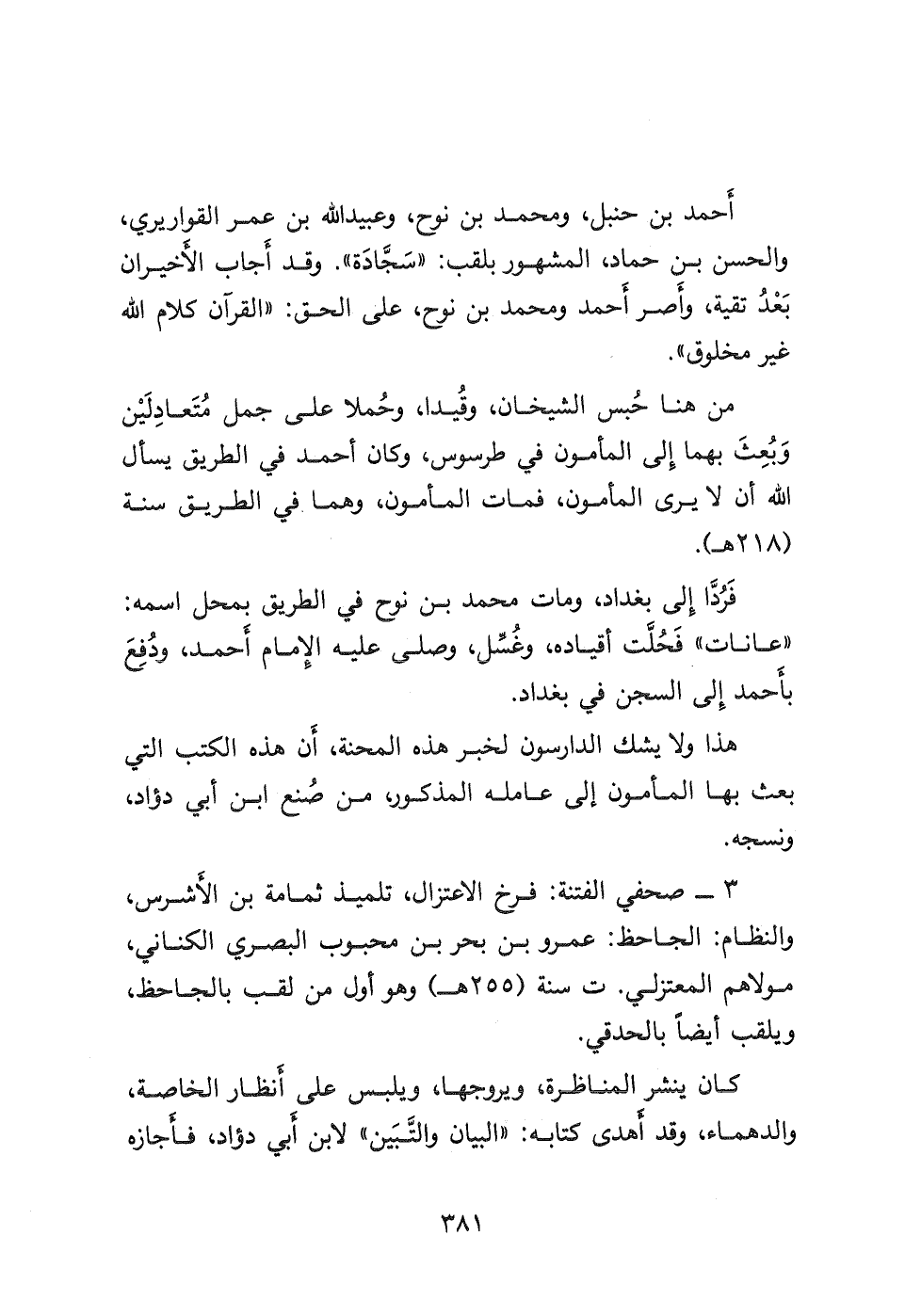 ٣- صحفي الفتنة: فرخ الاعتزال، تلميذ ثمامة بن الأشرس، والنظام: الجاحظ: عمرو بن بحر بن محبوب البصري الكناني، مولاهم المعتزلي ت سنة (٢٥٥ هـ) وهو أول من لقب بالجاحظ، ويلقب أيضا بالحدقي.