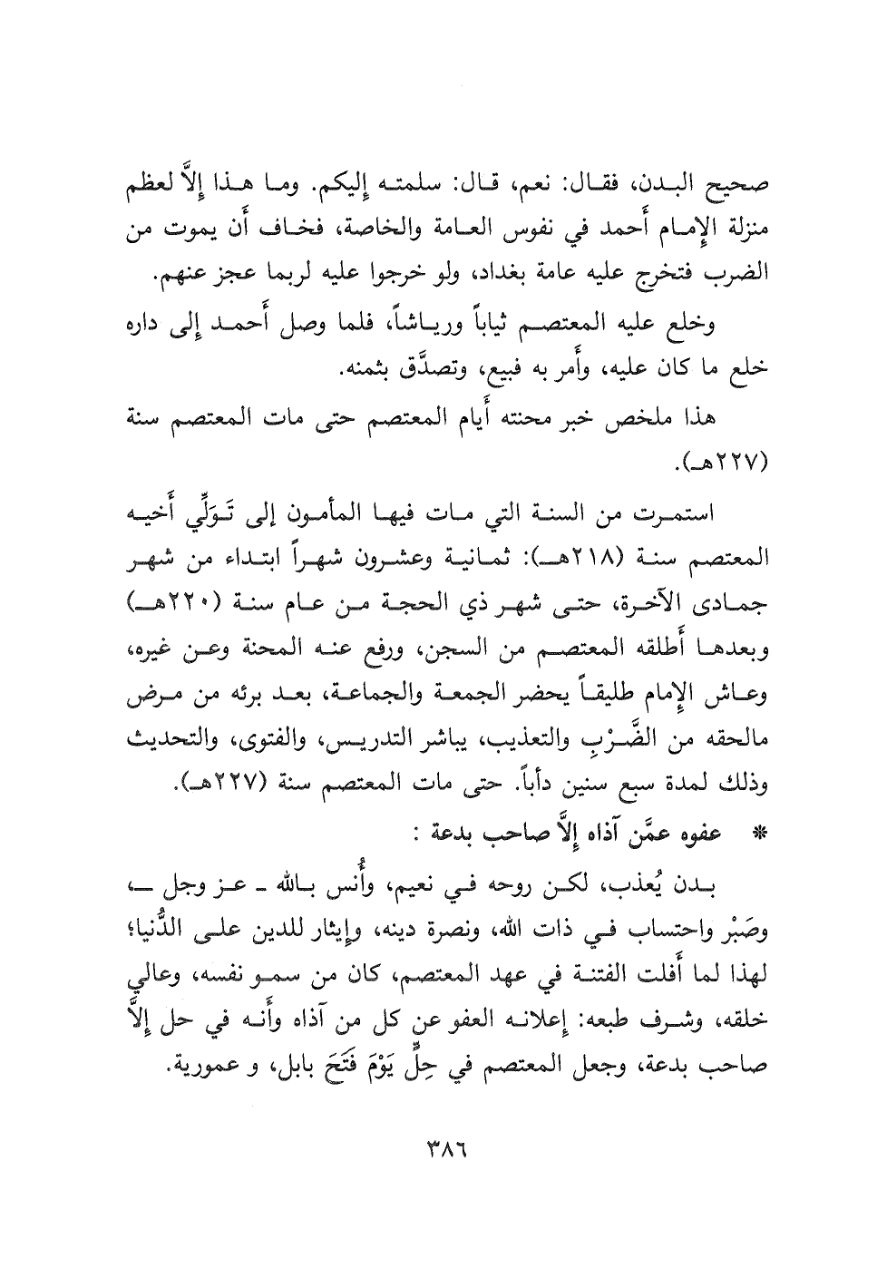 هذا ملخص خبر محنته أَيام المعتصم حتى مات المعتصم سنة (٢٢٧ هـ) .