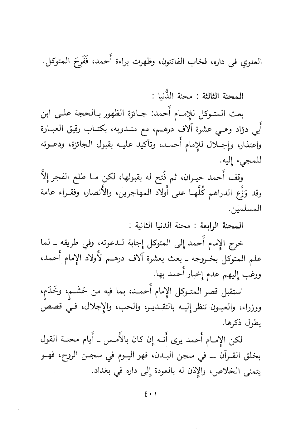 لكن الإمام أحمد يرى أَنه إن كان بالأمس- أيام محنة القول بخلق القرآن- في سجن البدن، فهو اليوم في سجن الروح، فهو يتمنى الخلاص، والإذن له بالعودة إلى داره في بغداد.
