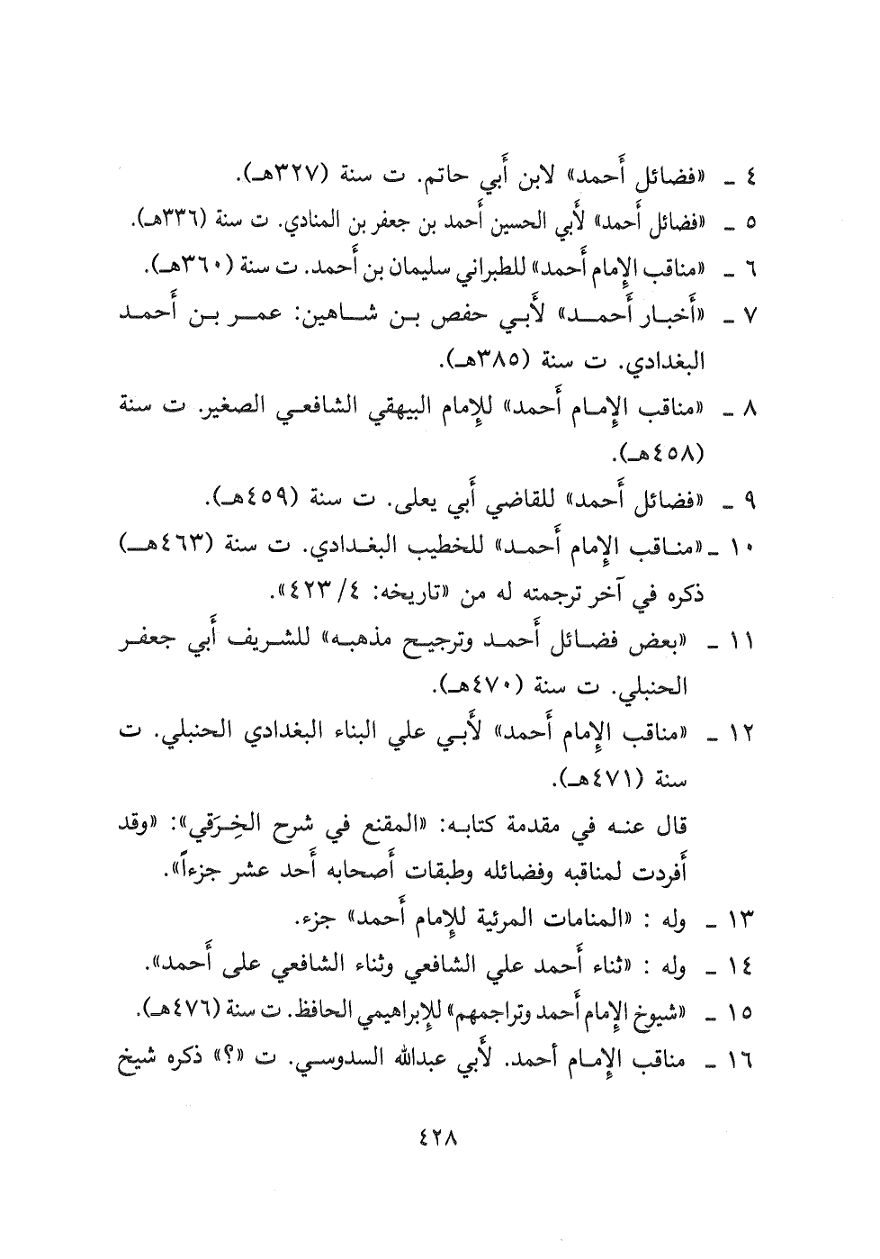 ١٦- مناقب الإمام أحمد. لأبي عبد الله السدوسي ت "؟ " ذكره شيخ