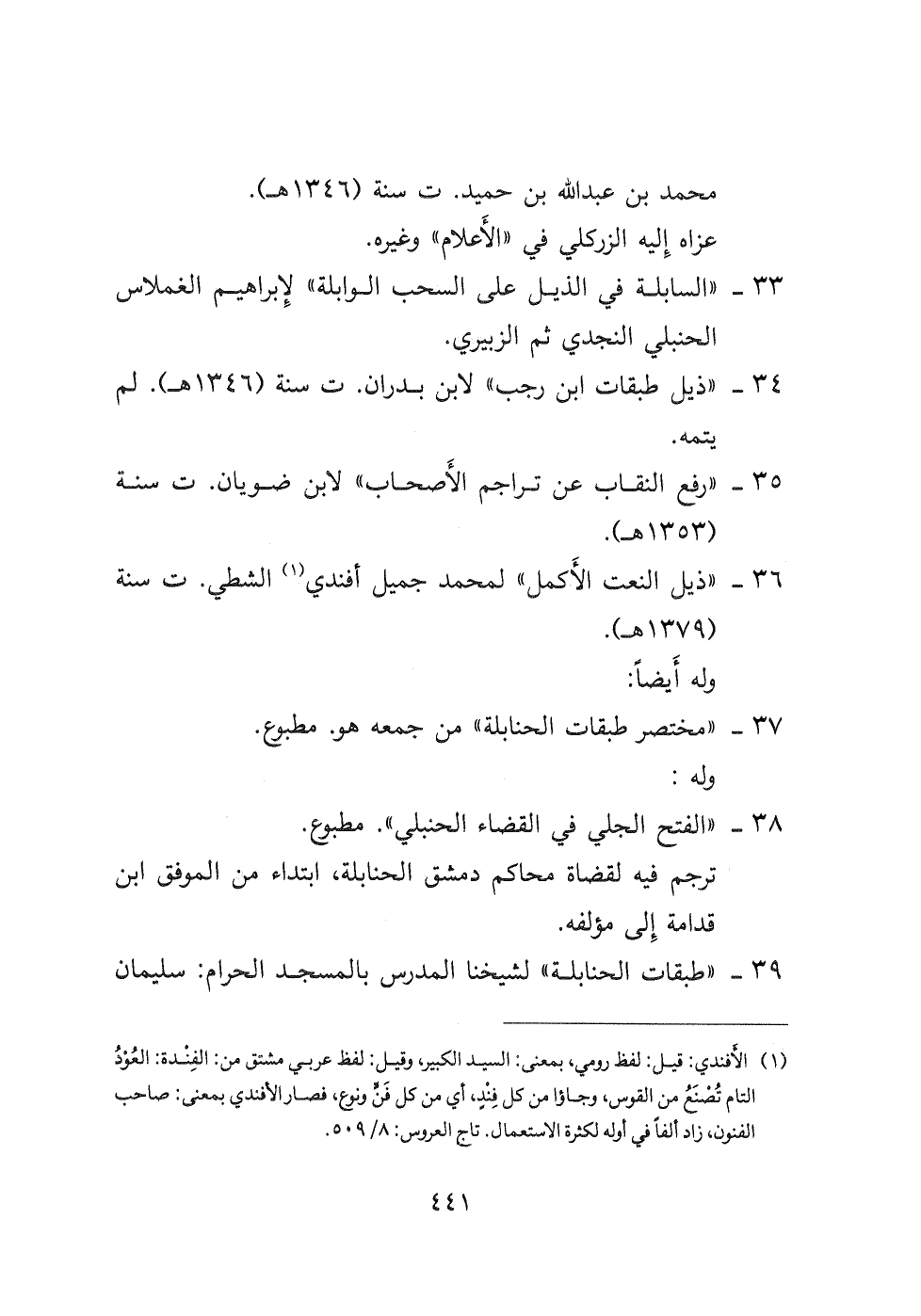 ٣٩- " طبقات الحنابلة " لشيخنا المدرس بالمسجد الحرام: سليمان