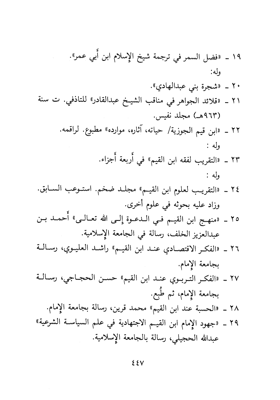 ٢٥- " منهج ابن القيم في الدعوة إلى الله تعالى " أَحمد بن عبد العزيز الخلف، رسالة في الجامعة الإسلامية.