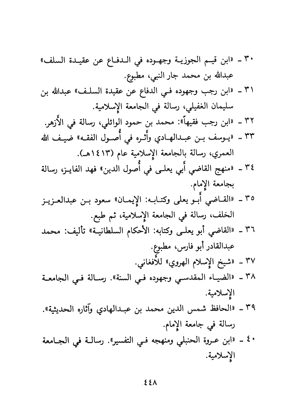 ٣١- " ابن رجب وجهوده في الدفاع عن عقيدة السلف " عبد الله بن سليمان الغفيلي، رسالة في الجامعة الإسلامية.
