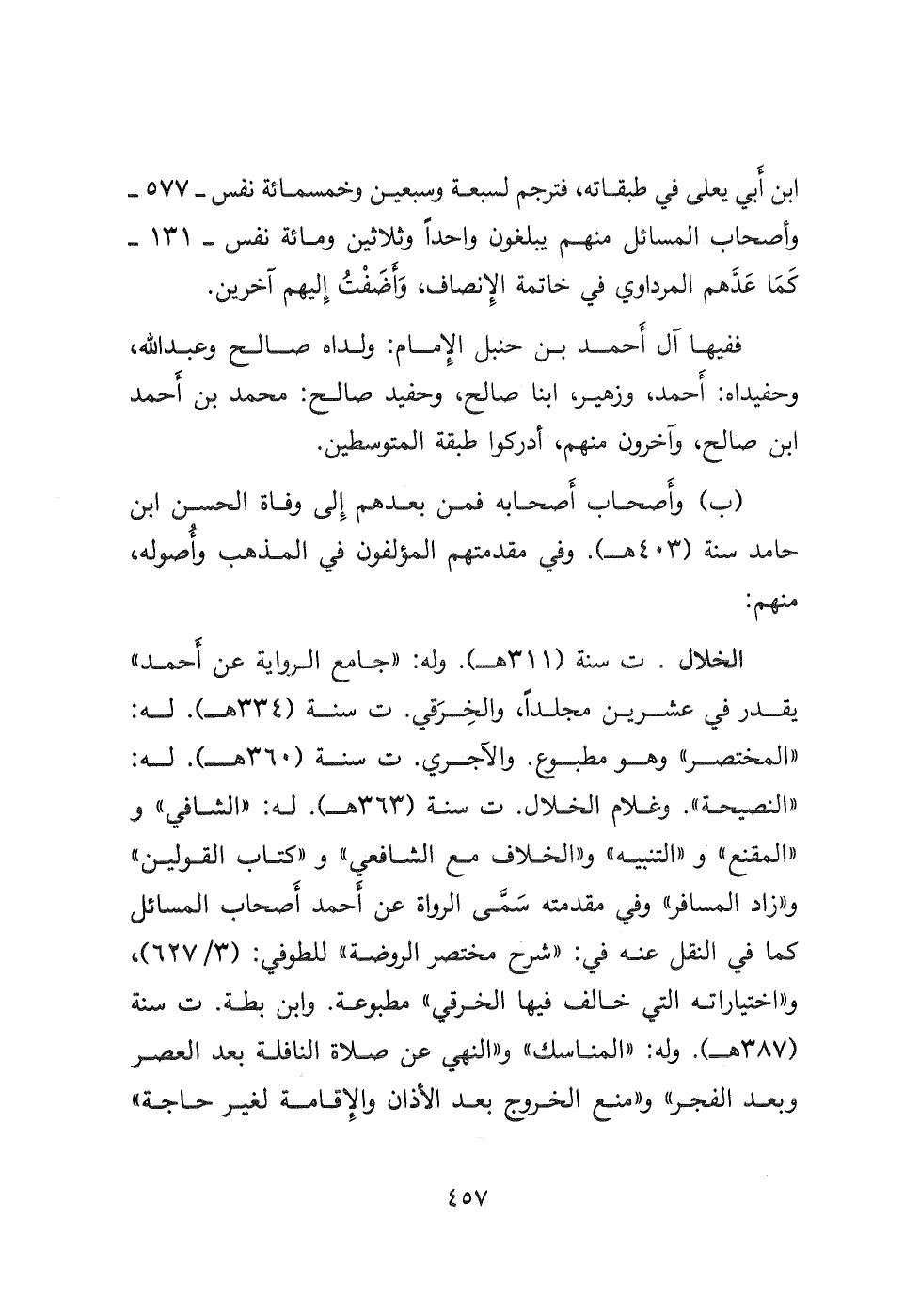ابن أَبي يعلى في طبقاته، فترجم لسبعة وسبعين وخمسمائة نفس -٥٧٧- وأصحاب المسائل منهم يبلغون واحدًا وثلاثين ومائة نفس - ١٣١- كَمَا عَدَّهم المرداوي في خاتمة الِإنصاف، وَأَضَفْتُ إليهم آخرين.