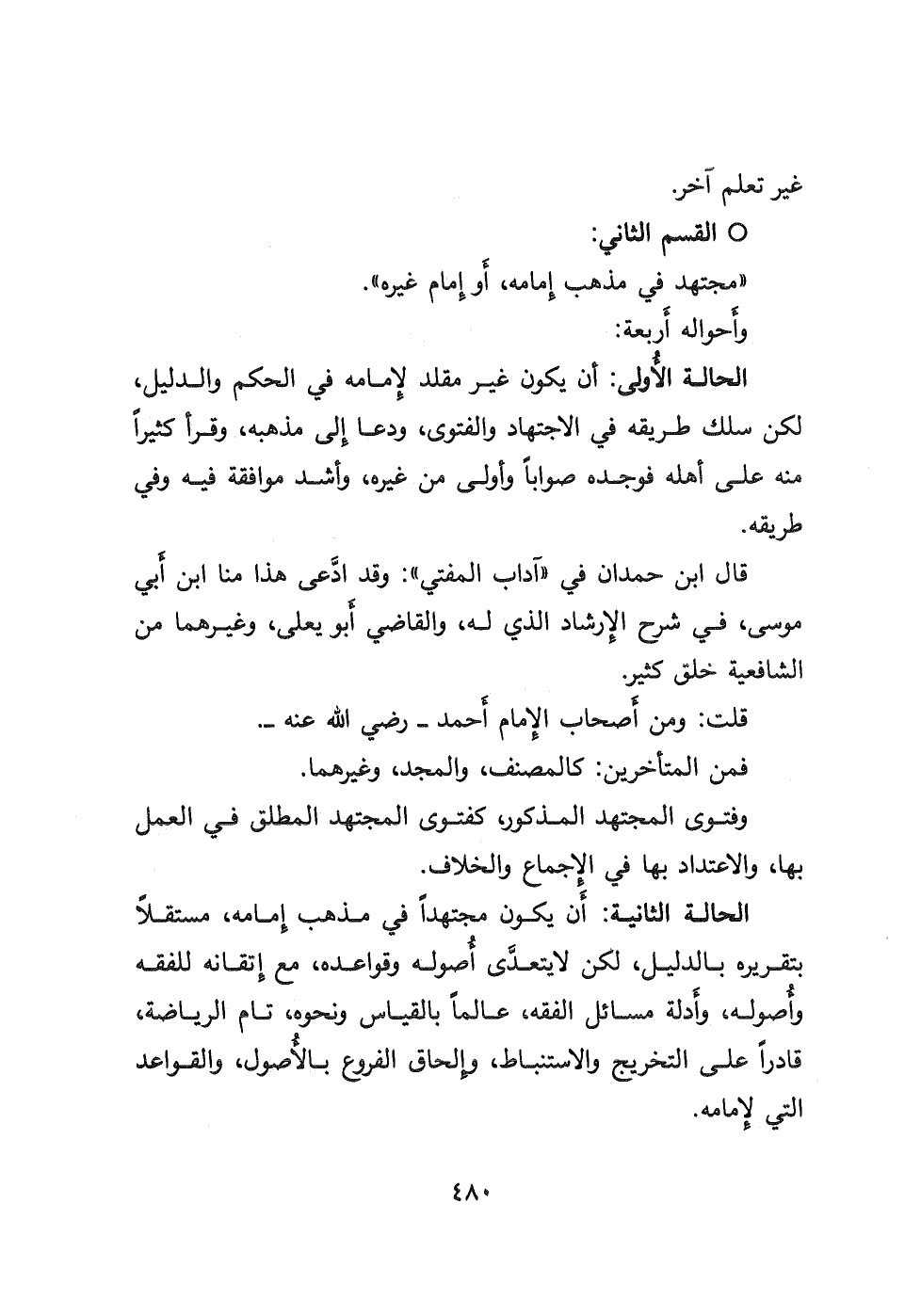 قال ابن حمدان في " آداب المفتي ": وقد ادَّعى هذا منا ابن أبي موسى، في شرح الإرشاد الذي له، والقاضي أبو يعلى، وغيرهما من الشافعية خلق كثير.