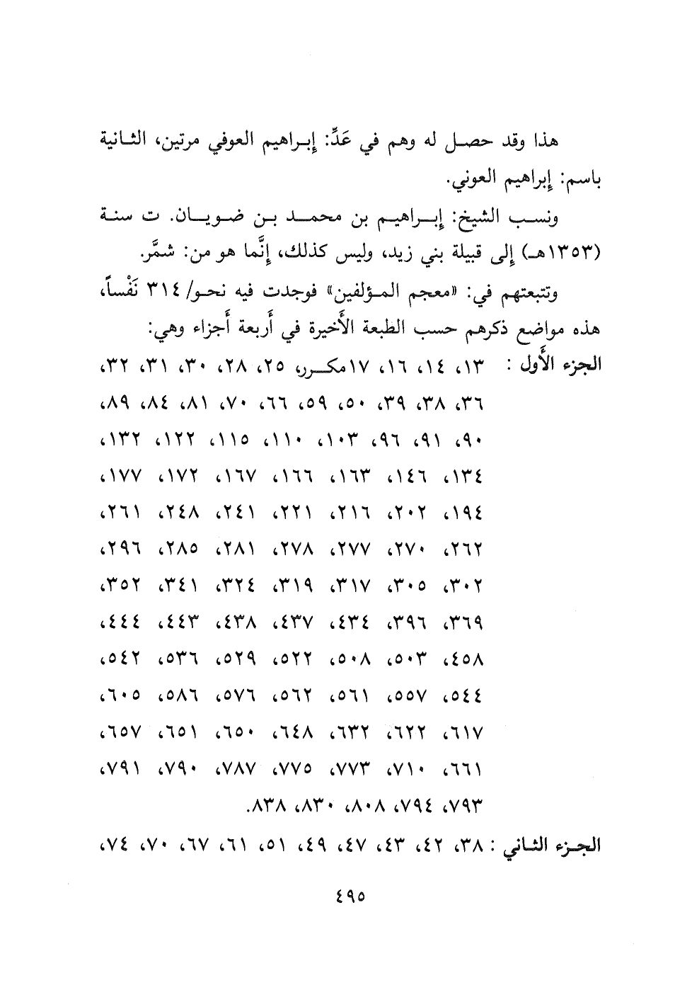 ونسب الشيخ: إبراهيم بن محمد بن ضويان ت سنة (١٣٥٣ هـ) إلى قبيلة بني زيد، وليس كذلك، إِنَّما هو من: شمَّر وتتبعتهم في: " معجم المؤلفين فوجدت فيه نحو/٣١٤ نَفْسًا، هذه مواضع ذكرهم حسب الطبعة الأَخيرة في أَربعة أَجزاء وهي: