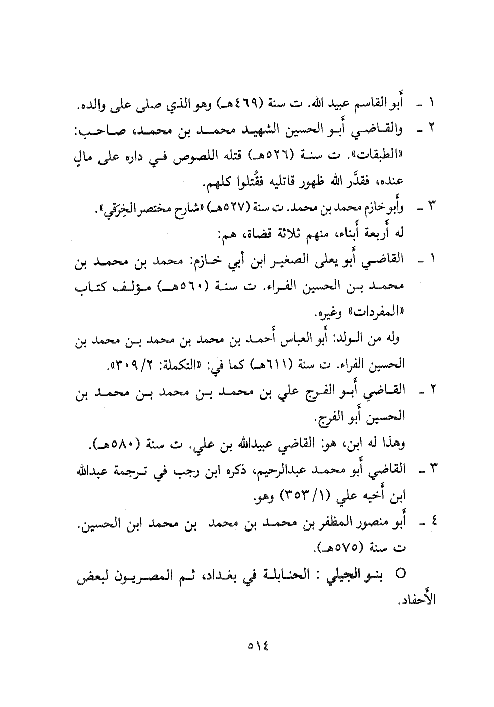 ١- القاضي أَبو يعلى الصغير ابن أبي خازم: محمد بن محمد بن محمد بن الحسين الفراء ت سنة (٥٦٠ هـ) مؤلف كتاب " المفردات " وغيره.
