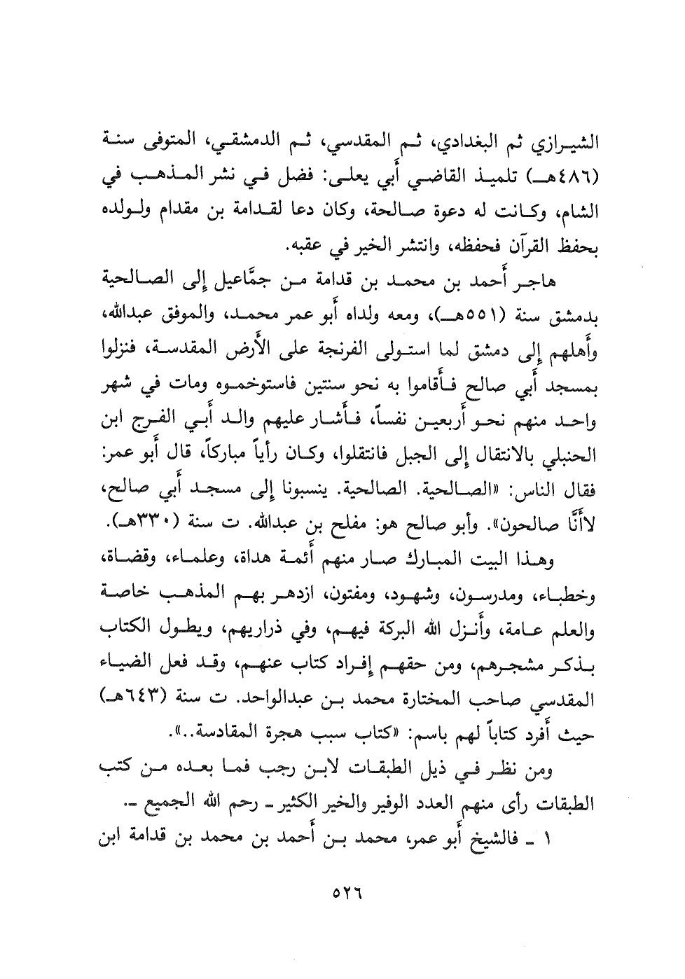 وهذا البيت المبارك صار منهم أَئمة هداة، وعلماء، وقضاة، وخطباء، ومدرسون، وشهود، ومفتون، ازدهر بهم المذهب خاصة والعلم عامة، وأَنزل الله البركة فيهم، وفي ذراريهم، ويطول الكتاب بذكر مشجرهم، ومن حقهم إفراد كتاب عنهم، وقد فعل الضياء المقدسي صاحب المختارة محمد بن عبد الواحد ت سنة (٦٤٣ هـ) حيث أَفرد كتابًا لهم باسم: " كتاب سبب هجرة المقادسة ... ".