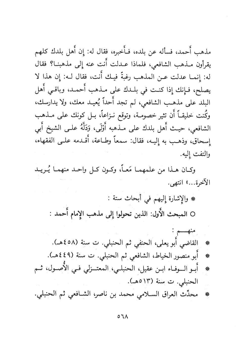 - المبحث الأول: الذين تحولوا إلى مذهب الِإمام أَحمد:
